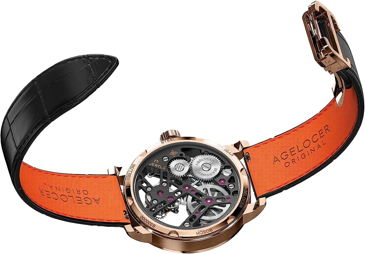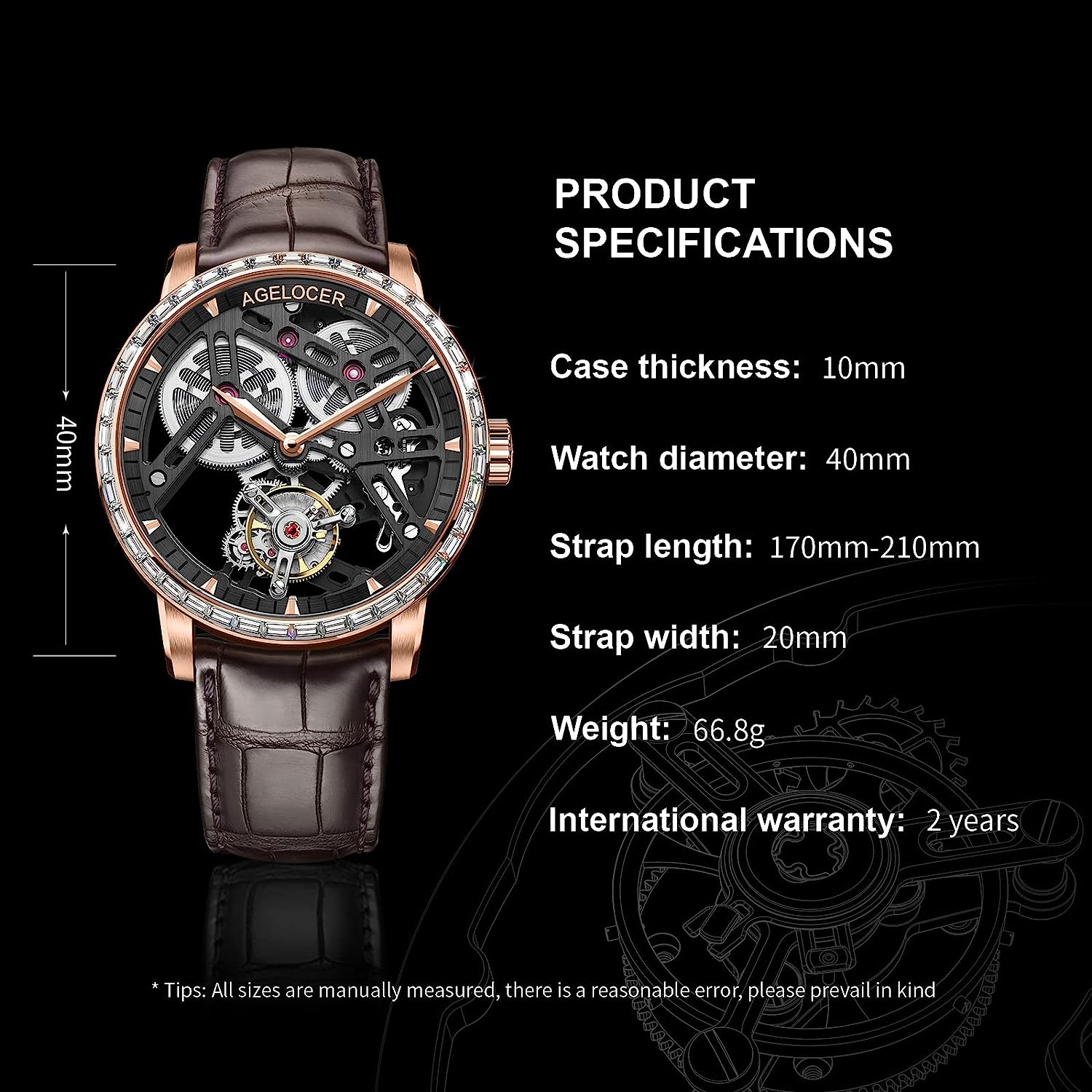 ⌚Flying Tourbillon Movement: Equipped with 80 hours power reserve, double-spring linkage system, incabloc triangle shock absorber, 4HZ vibration frequency, 25 ruby bearings, the men's dress watch use high-grade satin brushed & polished, keep time accurate.