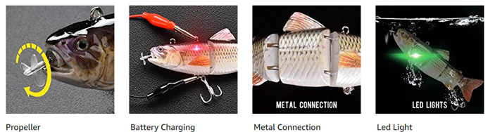 • ?【Bass Lure】Robotic Swimming Lure's body has a multi-section design, and the flexible, flexible body forms a more realistic form of fish swimming. The different sections of the Lure body are connected by metal and can withstand the strong bite force, unlike the ordinary Lure which is easily connected by the big fish.