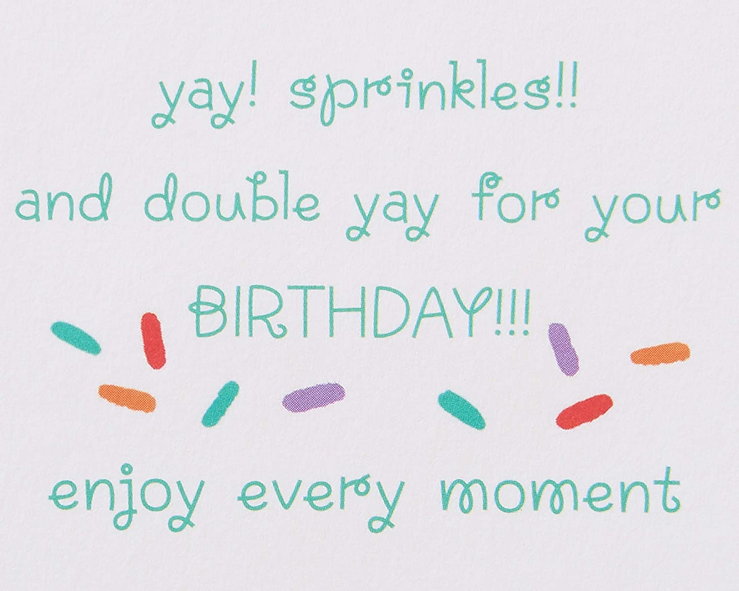 Hooray for birthdays! Three cheers – one for each layer of fun on this bright and celebratory birthday card by Papyrus. A big piece of cake takes center stage on this colorful design with lots of extra embellishments like glitter, embossing, gems, sequins and beads secured behind a clear plastic overlay, and dimensional paper attachments. Like the perfect birthday, it’s a little over the top in all the best ways, and it’s fun to send to anyone who deserves some bigtime birthday cheer. Includes lavender envelope with colorful polka dot lining and a classic gold seal. Extra postage is required.