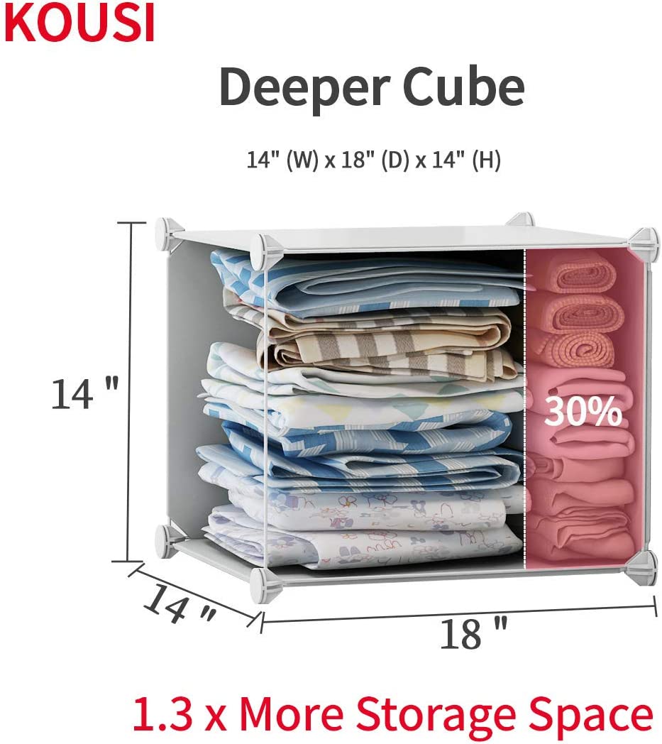 【LARGE & MULTI-USE STORAGE】 A total size of 56" x 18" x 56" for this storage shelf. Each storage cube is 14"x18"x14" large, 3x more space than normal cube. Great storage space to store folded clothes, bags, accessories, shoes, toys, yarn and pretty much anything you want!