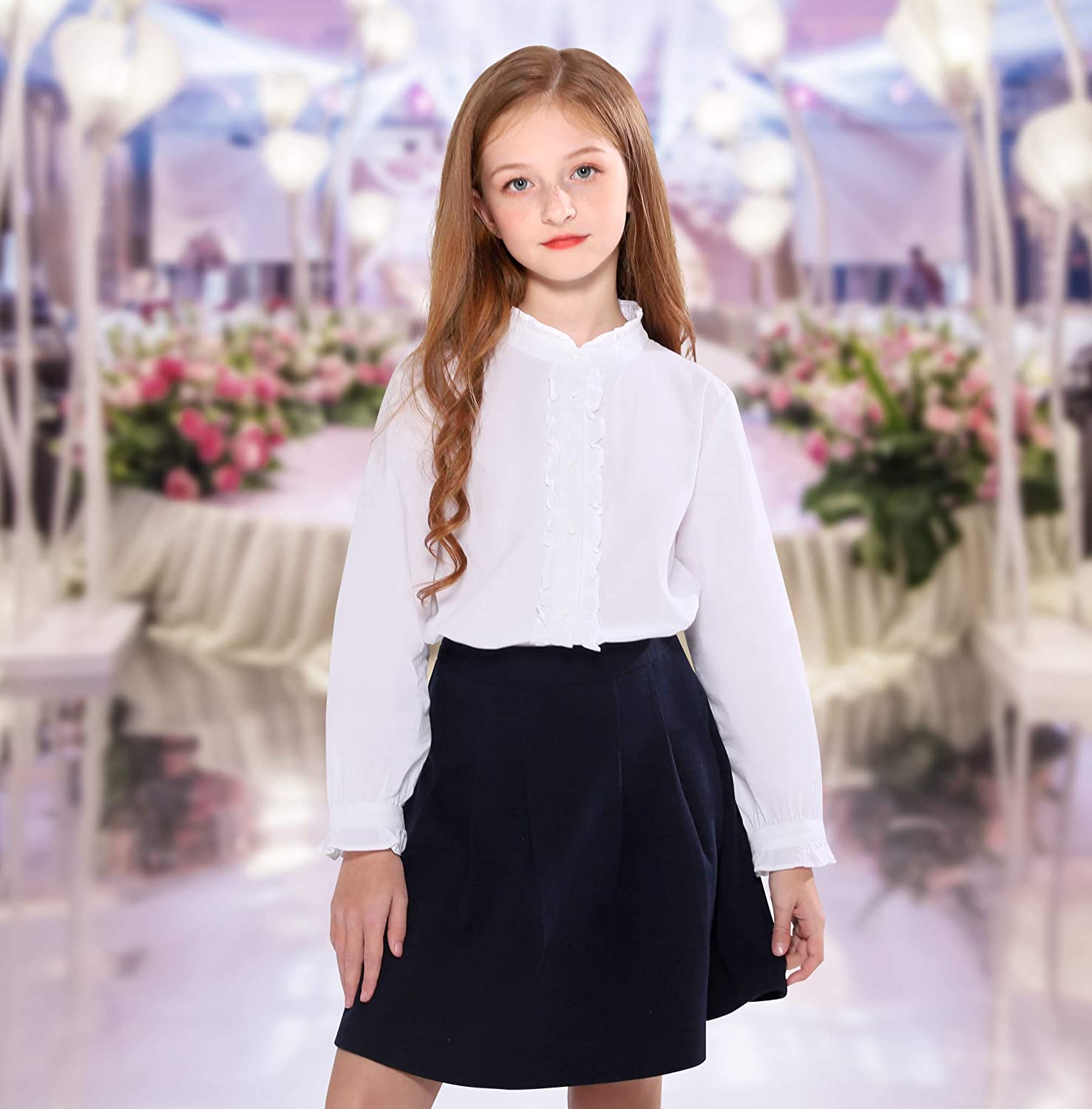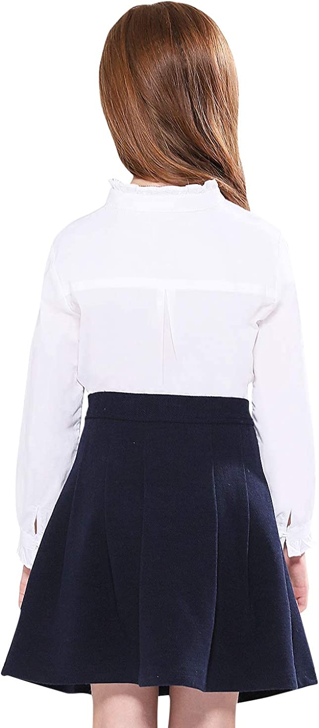 SOLOCOTE Girls White Blouse Ruffle Long Sleeve Button Down Shirts Princess Cotton Loose Soft Tops Spring and Summer 3-14Y