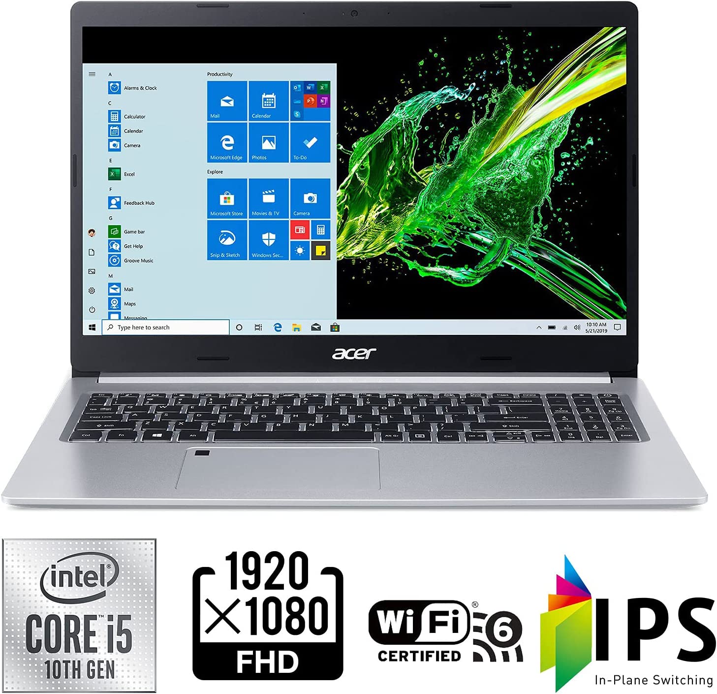Acer Aspire 5 A515-55-56VK comes with these high level specs: 10th Generation Intel Core i5-1035G1 Processor 1.0GHz with Turbo Boost Technology up to 3.6GHz (6MB Smart cache), Windows 10 Home, 15.6" Full HD (1920 x 1080) widescreen LED-backlit IPS Display, Intel UHD Graphics, 8GB DDR4 Memory, 256GB PCIe NVMe SSD, 1 - Available Hard Drive Bay, True Harmony Gen 2 Technology, Two Built-in Stereo Speakers, Acer Purified.Voice Technology with Two Built-in Microphones, Intel Wireless Wi-Fi 6 AX201 802.11ax Dual-Band 2.4GHz and 5GHz featuring 2x2 MU-MIMO technology (Max Speed up to 2.4Gbps), 10/100/1000 Gigabit Ethernet LAN (RJ-45 port), Bluetooth 5.0, Back-lit Keyboard, Acer Fingerprint Reader supporting Windows Hello, HD Webcam (1280 x 720), 1 - USB 3.1 (Type-C) Gen 1 port (up to 5 Gbps), 2 - USB 3.1 Gen 1 Port (one with Power-off Charging), 1 - USB 2.0 Port, 1 - HDMI Port with HDCP support, Lithium-Ion Battery, Up to 8-hours Battery Life, 3.97 lbs. 1.8 kg (system unit only) (NX.HSPAA.004).