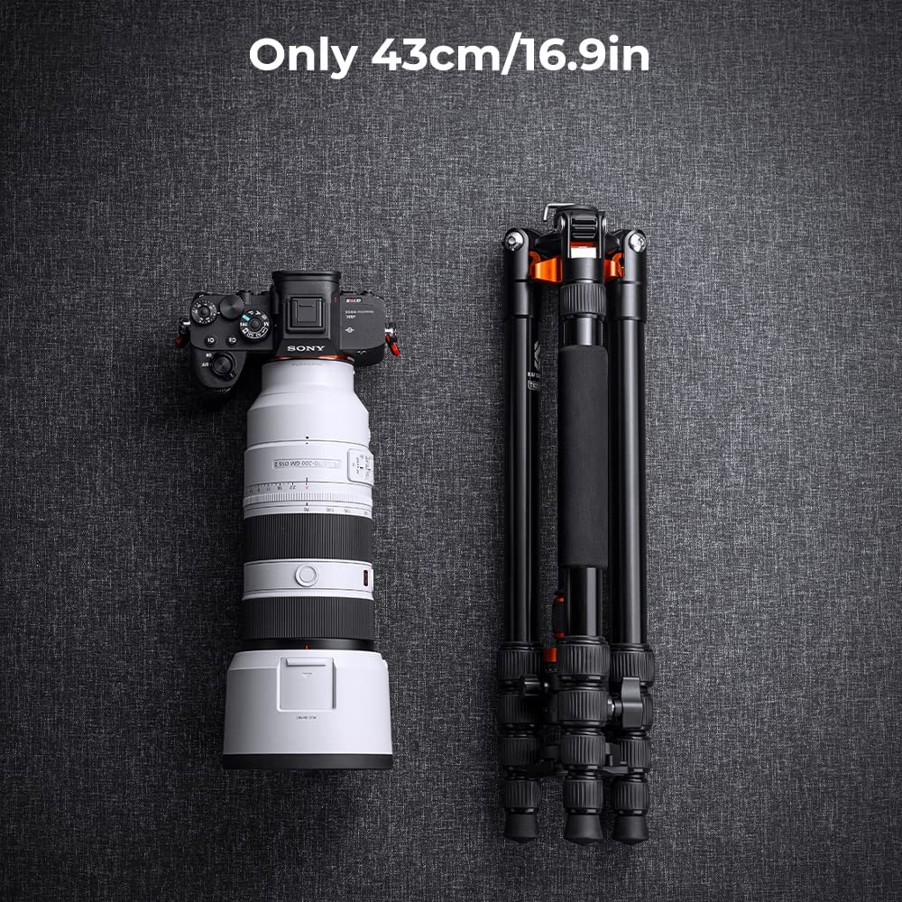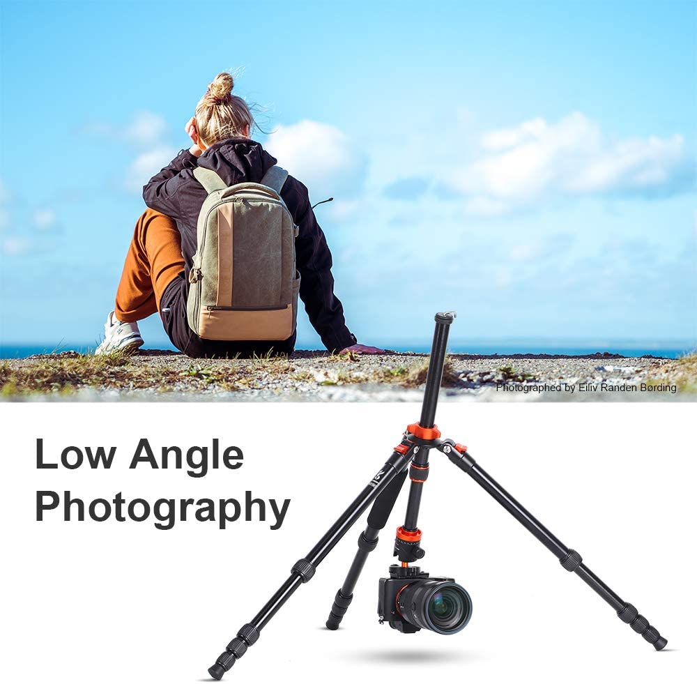 • 【Compact & Portable】 Quality military magnesium aluminum alloy,corrosion resistance; tripod with ball head weighs only 3.30 lbs/1.5kg, it can be 180°reflexed and folded to 16.9'', easy to put it in a backpack or suitcase when travel.