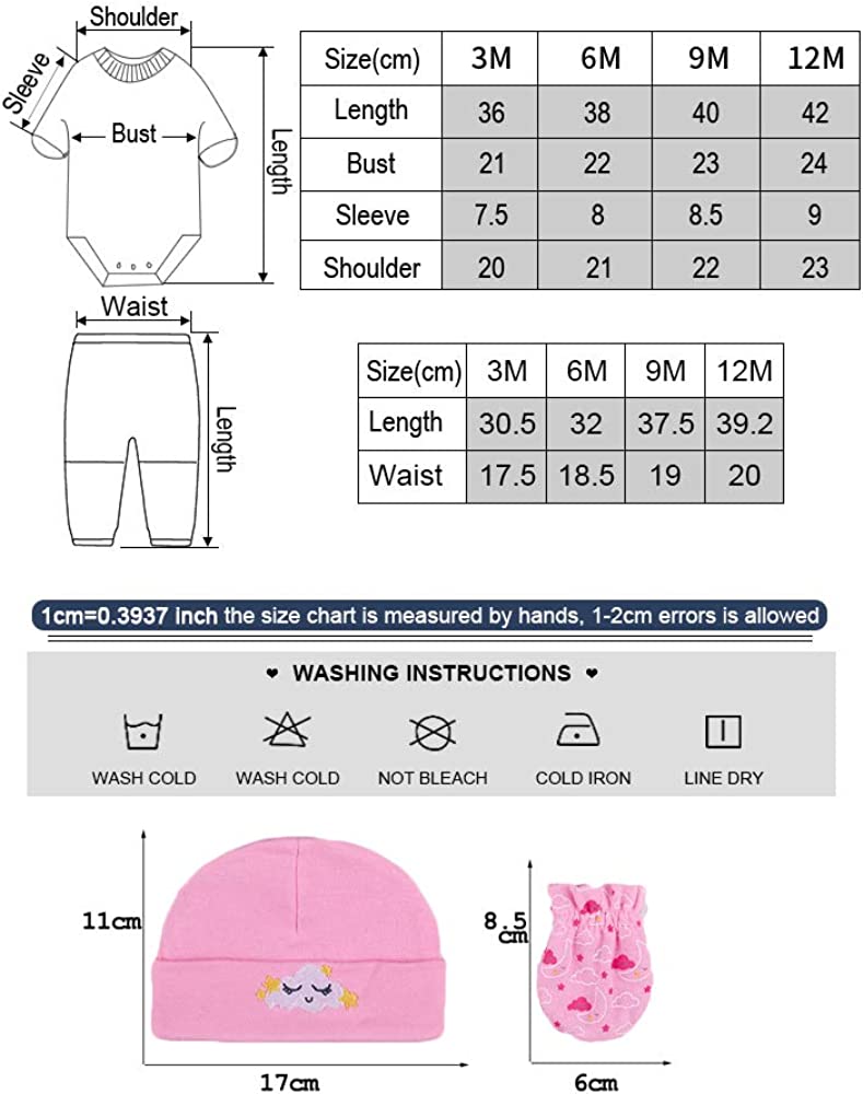 Set includes five bodysuits, four pants, five cap,and five mittens