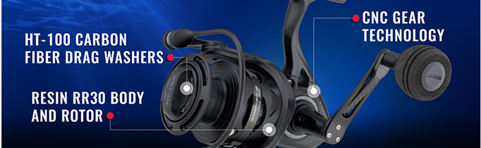 The PENN Conflict II features stealthy cosmetics, a Lightweight design (our lightest spinning reel ever), and silky smooth HT-100 drag. The RR30 Rigid Resin body and rotor are extremely lightweight and durable. Internally the Conflict II is powered with our CNC Gear Technology, and high quality stainless steel ball bearings. With the Super line Spool no backing is needed because of the rubber gasket that keeps superliner from slipping. .