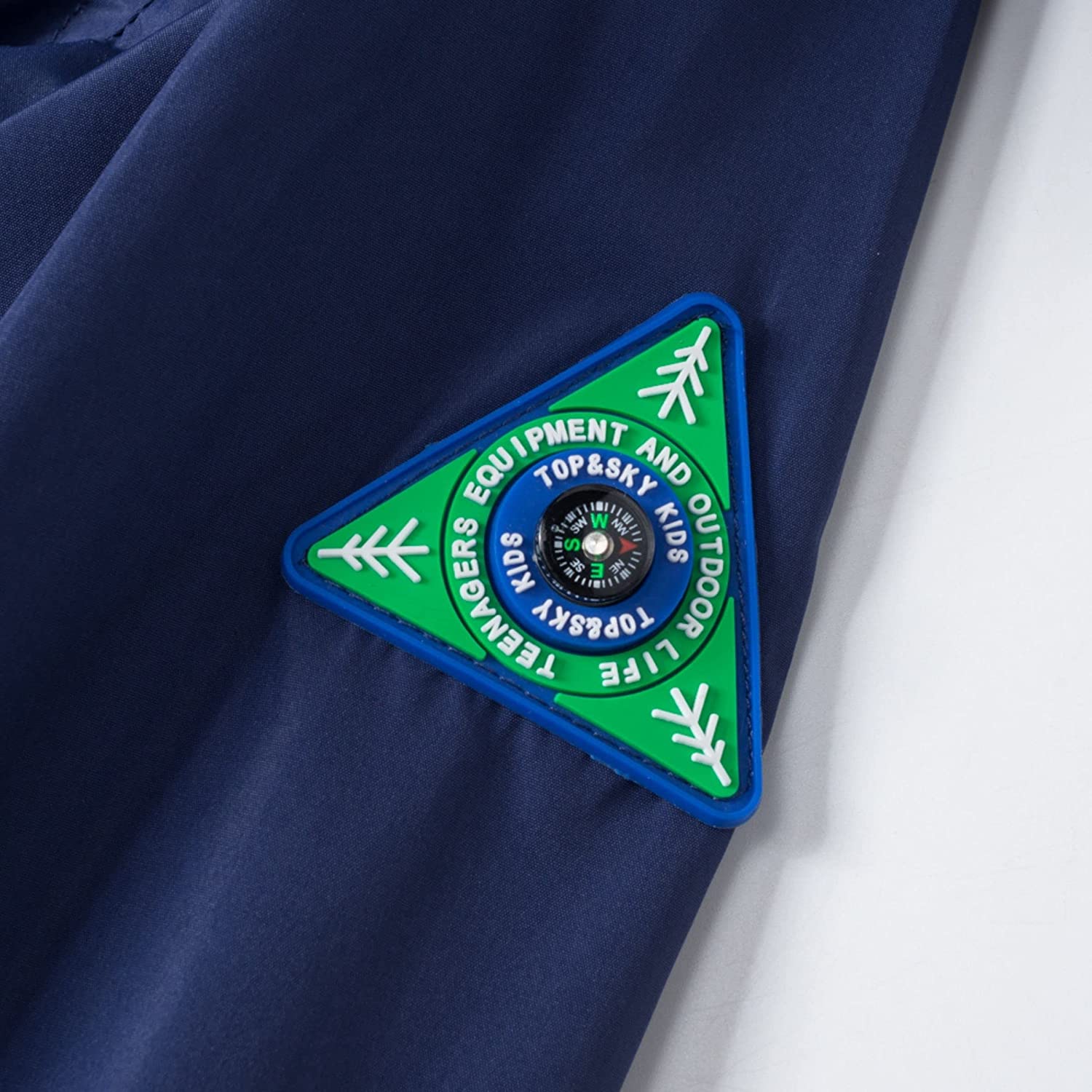 Full-zip closure, removable hood, elastic cuffs, reflective side zippered pockets, and a tiny compass on the sleeve add to the fun and practicality of the girls rain jacket.