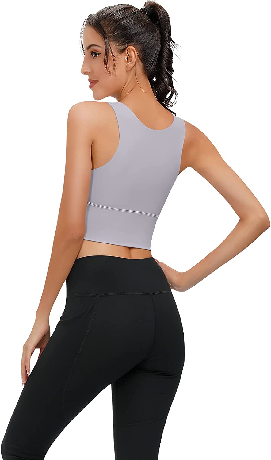 - High Neckline Cropped Tank: With wide straps and built in shelf bra,this long line sports bra two-tone yoga crop top provide you with high coverage to hold your "girls" in, but also offer you great support to keep your bras staying in place better. A full range of motion always let you twist with ease during exercising.