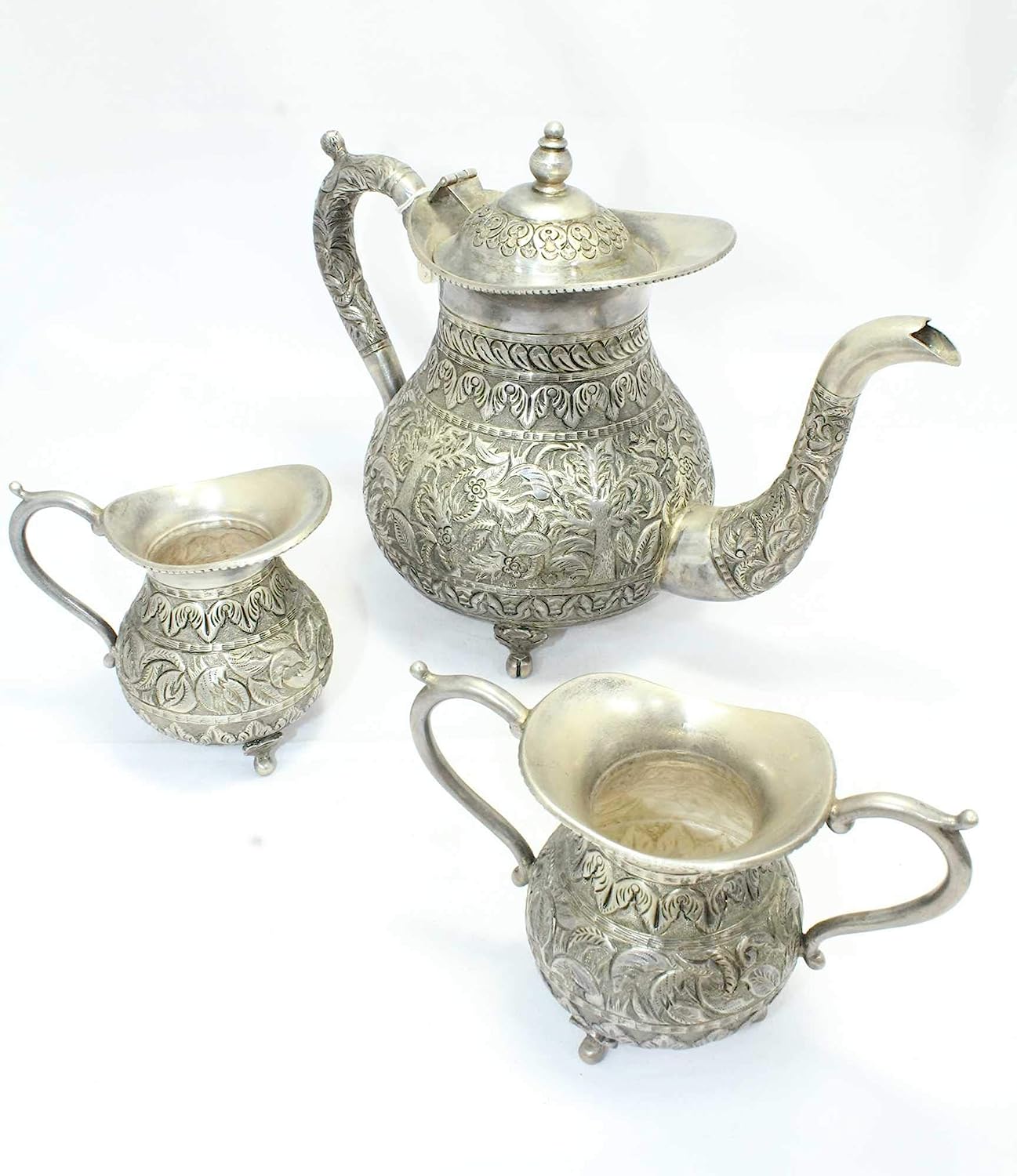 Rajasthan Gems 3 Pc/Set Tea Set Handmade Antique Alloyed Silver Tea Pot Milk Pot Sugar Pot - 1