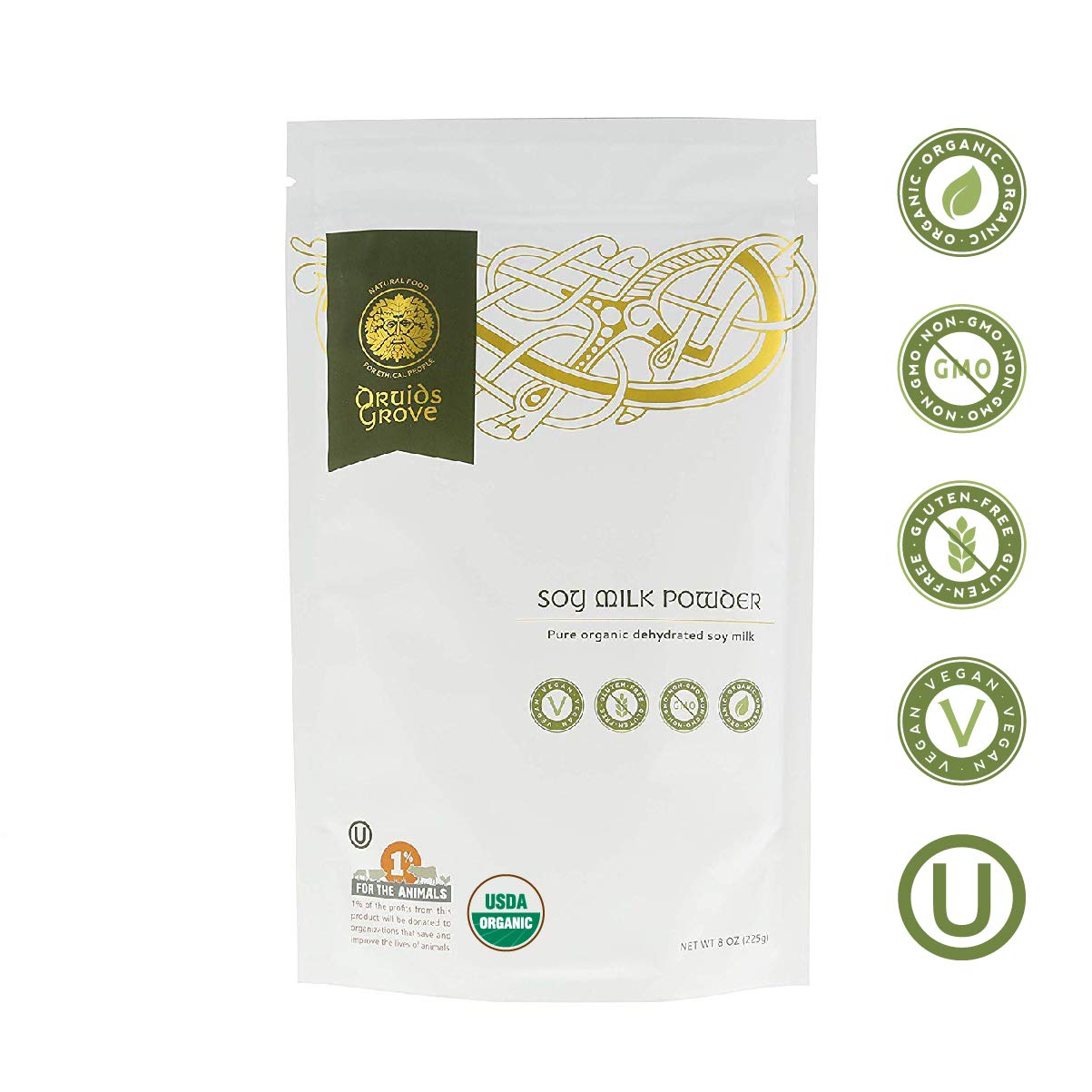 Druids Grove Soy Milk Powder Vegan ? Non-GMO Gluten-Free OU Kosher Certified - 8 oz.