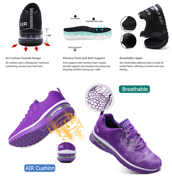 • DESIGNED SPECIFICALLY FOR THE AMERICAN PEOPLE: Womens running shoes made of mesh and synthetic upper materials offer a snug, sock-like fit. Knit tennis fabric, comfortable, breathable and lightweight. Good air cushion feedback. Making it popular with Women who love sports