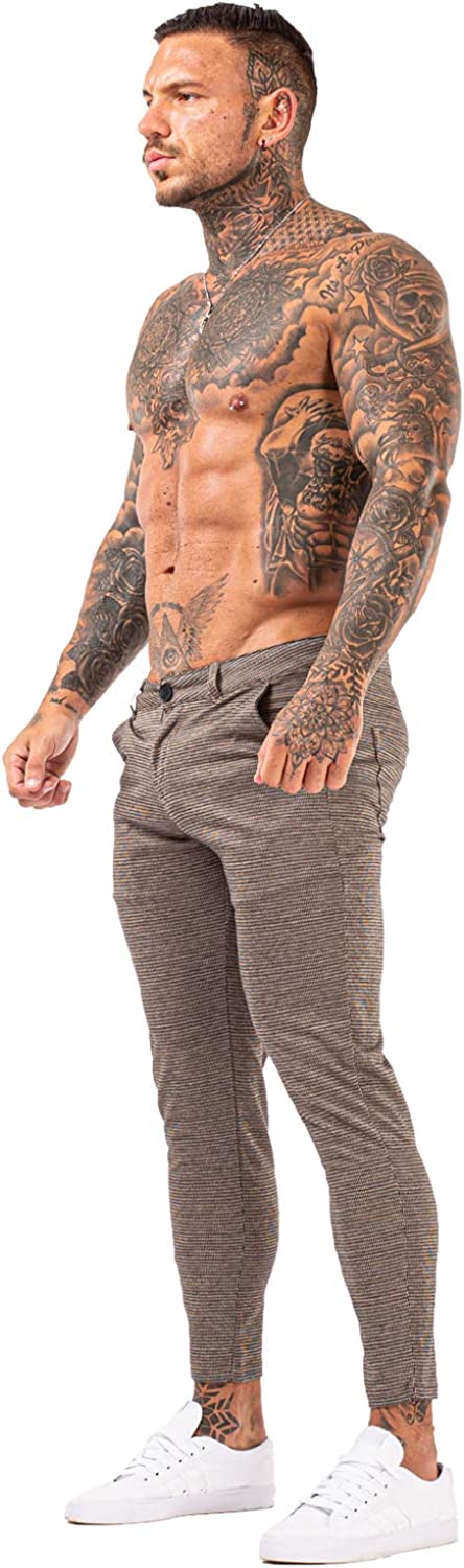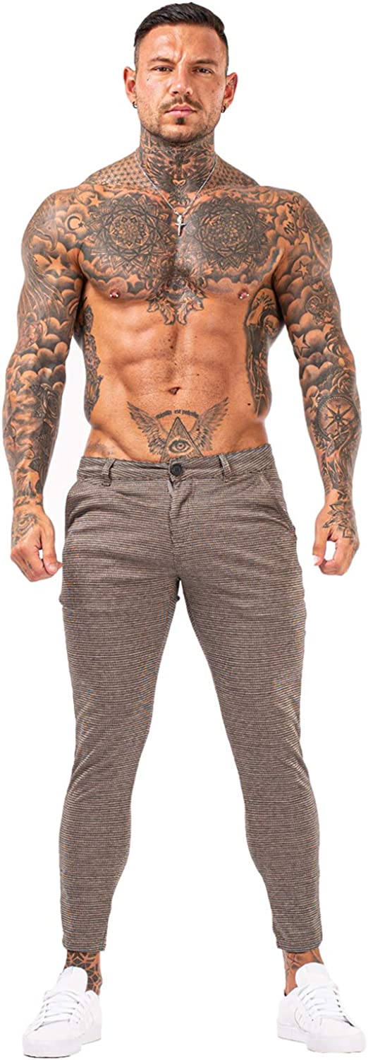 GINGTTO Mens Chinos Slim Fit Stretch Flat-Front Skinny Dress Pants Grey Plaid