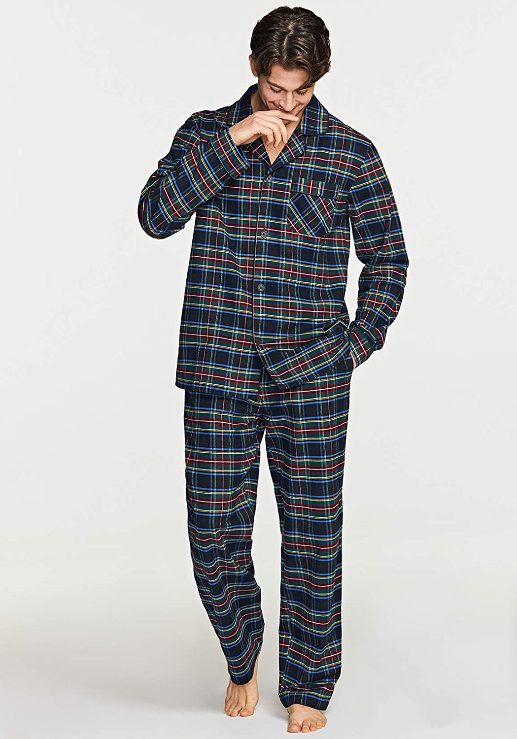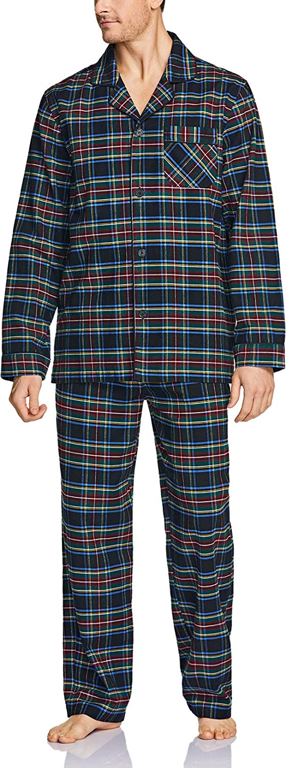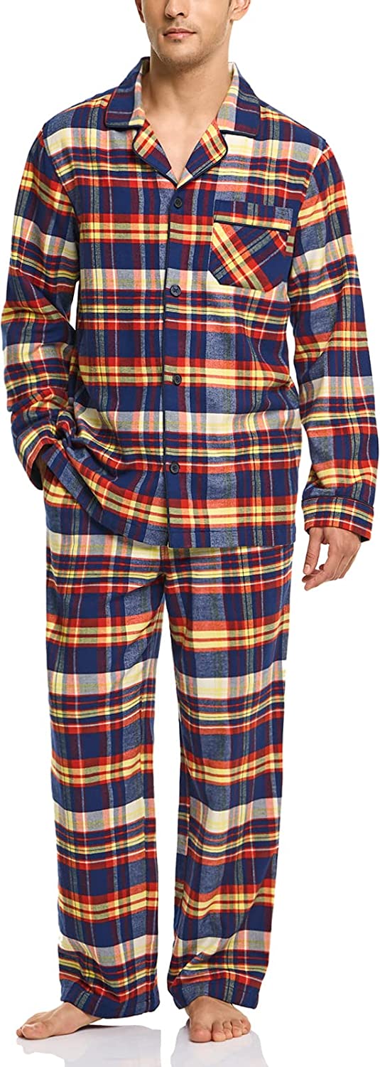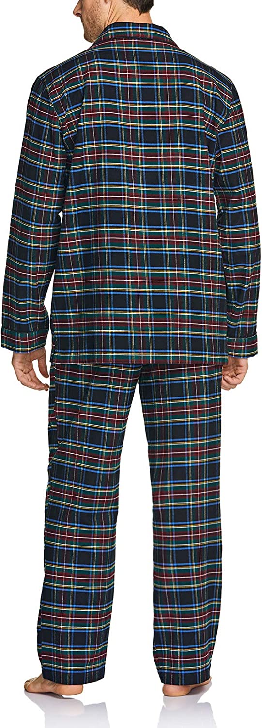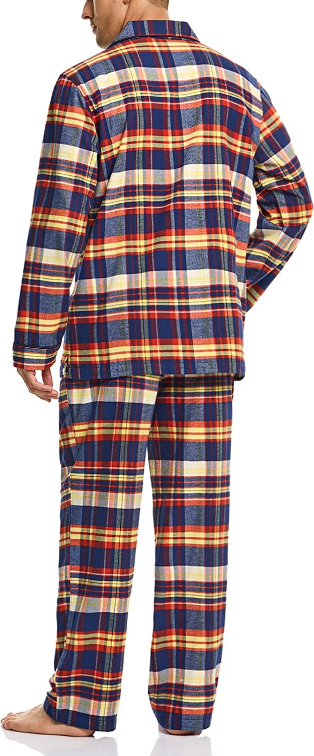 CQR Men's 100% Cotton Plaid Flannel Pajama Set, Brushed Soft Lounge & Sleep PJ Top & Bottom with Pockets