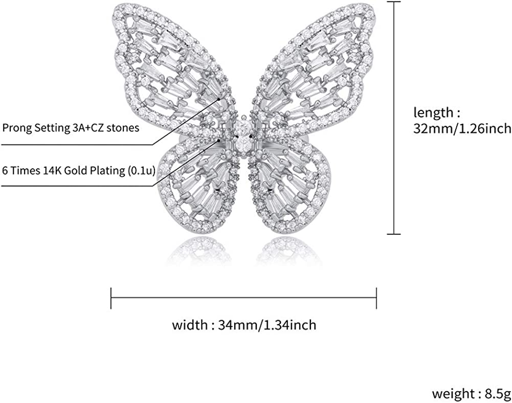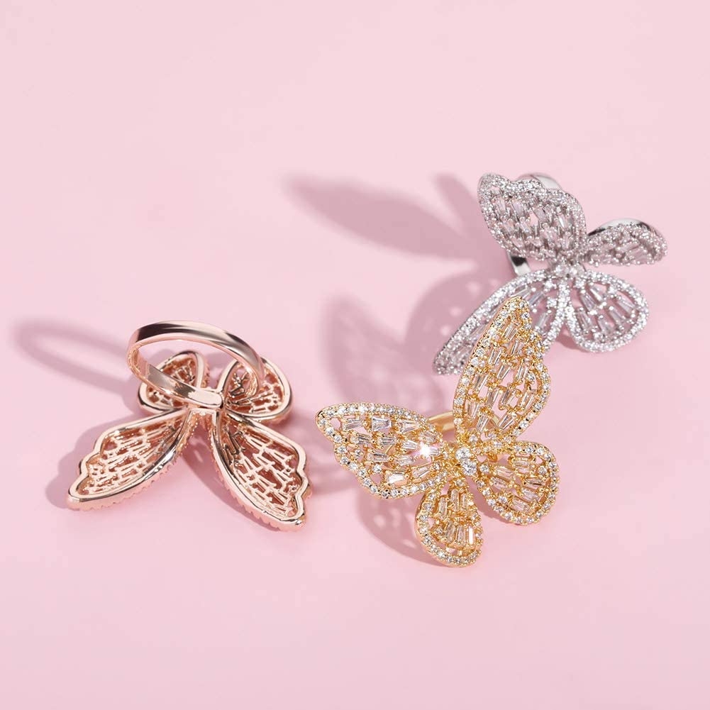 ?[Adjustable open-end Rings]- Our silver butterfly ring can fit any size finger. The wide of this cz ring can be adjusted to fit your finger's size. At the same time, when you bend your finger, the butterfly on the ring will be like flying,especially beautiful and cute.
