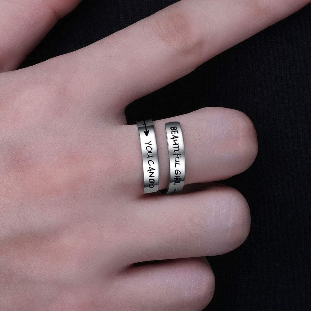 Adjustable Silver Rings for Girls Stainless Steel Message Arrow Stacking Thumb Rings Inspirational Gift for Women