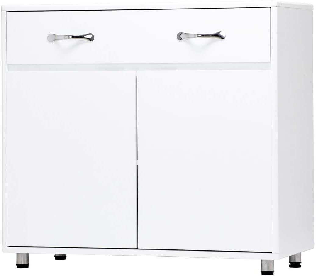 HomVent Storage Cabinet with Doors and Storage Drawer, 2 Doors Side Table with Drawer & Two Shelves Inside, Storage Idle Items Cabinet/Organization Shoe Cabinet for Living Room Office Bedroom (White)