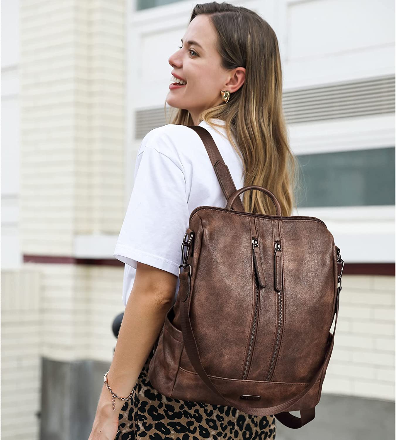 [WELL-DESIGNED] The shoulder straps of the leather backpack are adjustable. And you can carry it as a single-shoulder bag or casual backpack as there is a extra removable short shoulder strap.