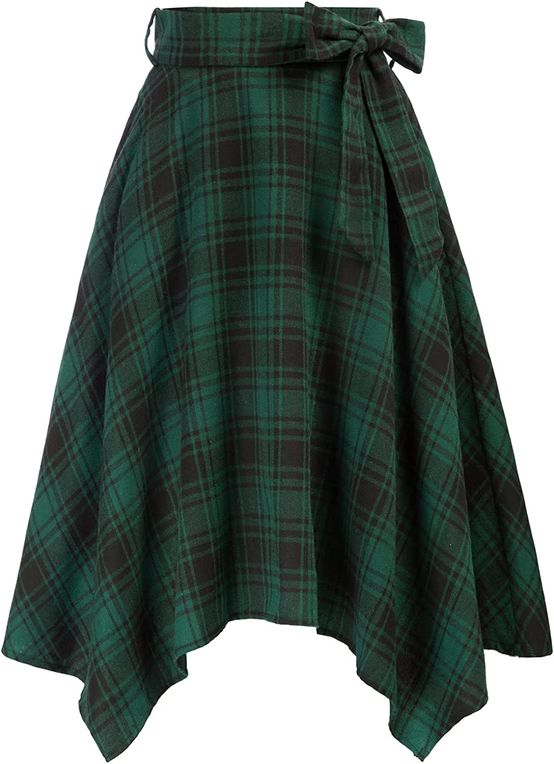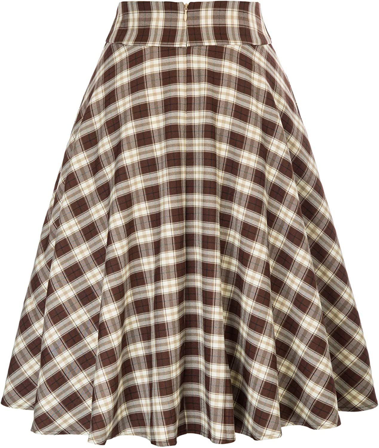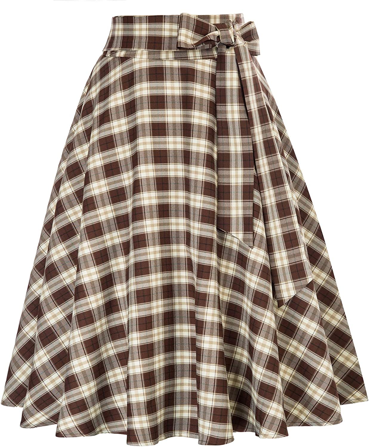 Belle Poque Women's Plaid Skirt A-Line Flared High Waisted Skirt with Pockets