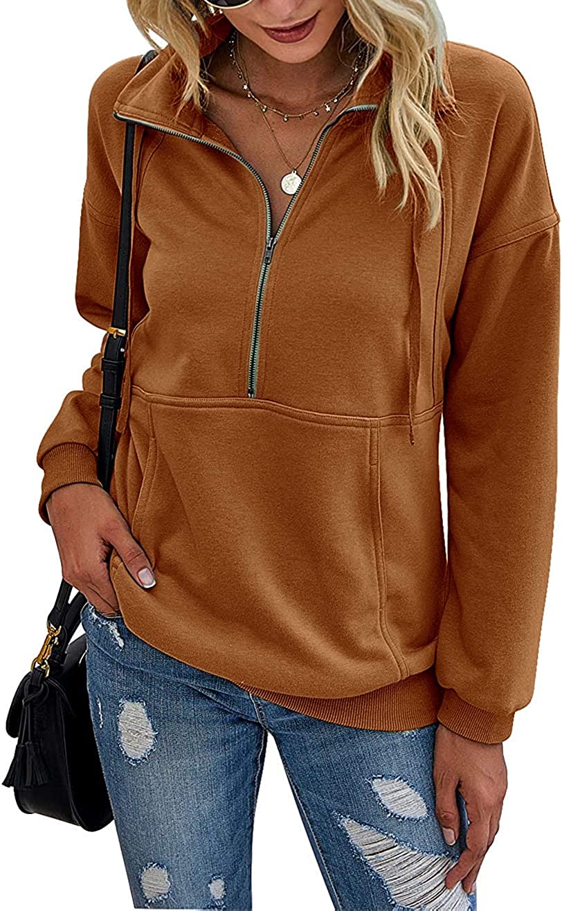 Versatile Half Zip Pullover Women: Drawstring lapel womens sweatshirt in solid color is simple yet fashion. Half zipper womens sweatshirts no hood are easy to put on and take off. Relaxed fit plain cute sweatshirts for women can be dresses up or down, perfect with leggings, jeans or shorts