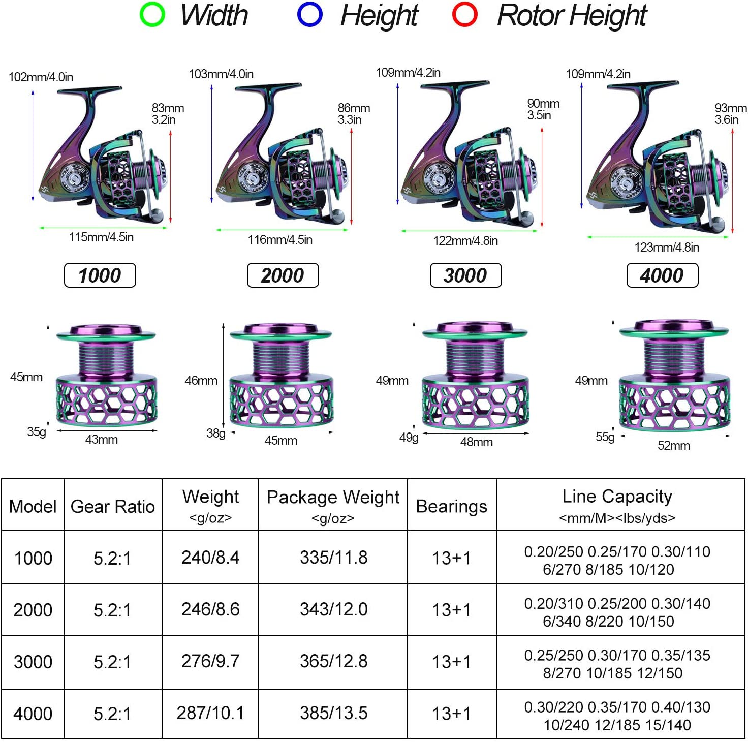 Sougayilang Colorful Fishing Reel 13 +1 BB Light Weight Ultra Smooth Powerful Spinning Reels, with CNC Line Management Graphite Frame, for Freshwater