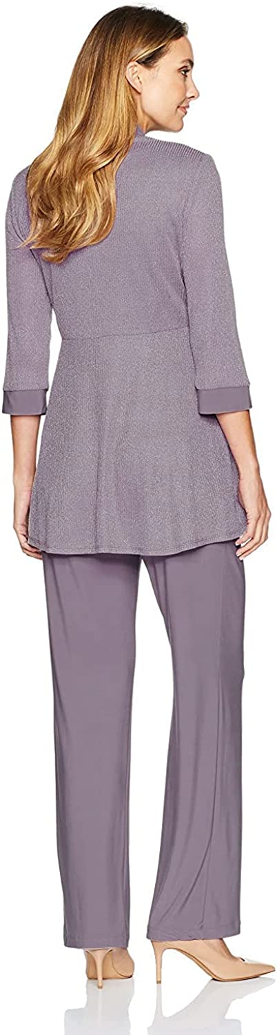 R&M Richards Women's Two Piece Metalic Rib Pant Set Missy