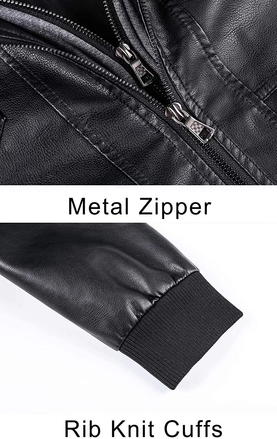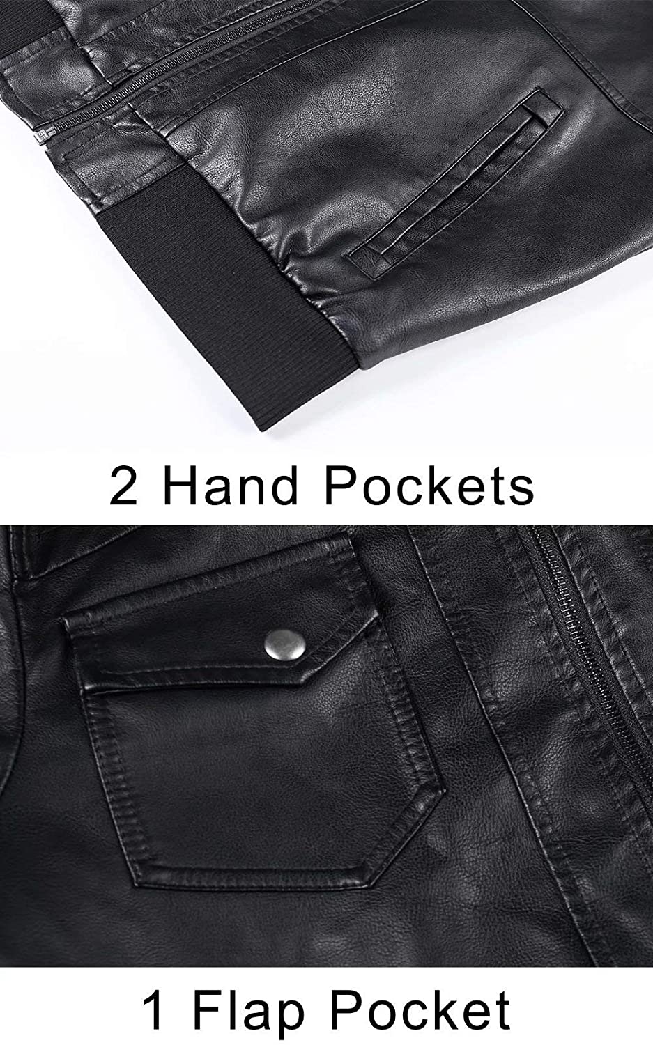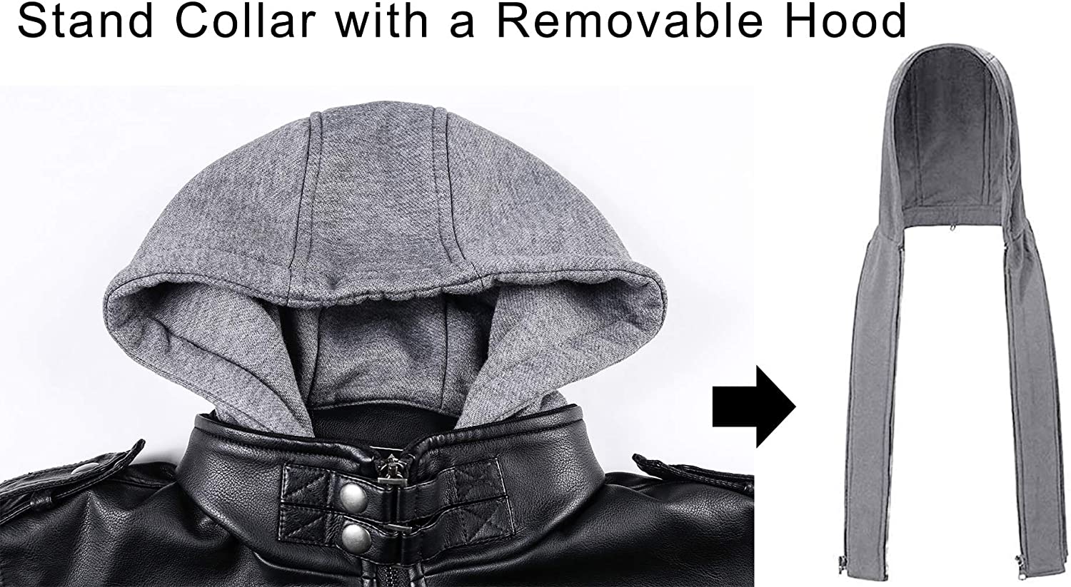 MAGCOMSEN Men's Stand Collar PU Faux Leather Jacket 6 Pockets Motorcycle Bomber Jacket with a Removable Hood