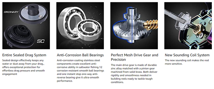• MULTIFUNCTIONAL UPGRADE- with the braid line-ready spool aluminum spool, you no longer need to use backing line when spooling on braid fishing line to avoid slippage.The new sounding coil makes the reel more sensitive. To provide solid and comfortable control over your reel, Sougayilang fitted the handle with extremely comfortable, Super Polymer handle knobs for slip resistant control.