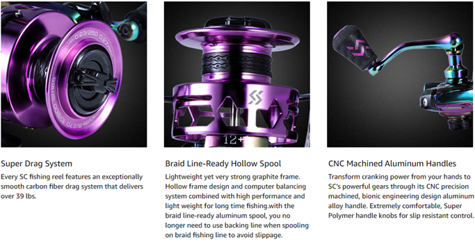 • SMOOTH and RELIABLE – 12 corrosion resistant smooth ball bearings and one instant stop one-way anti-reverse bearing give it ultra-smooth performance. Each reel features an exceptionally smooth, infinitely adjustable, Every SC fishing reel features an exceptionally smooth carbon fiber drag system that delivers over 39 lbs.Sougayilang SC spinning reels are waiting for you to handle the biggest fish. This fishing reel is an awesome gift for experienced and beginner.