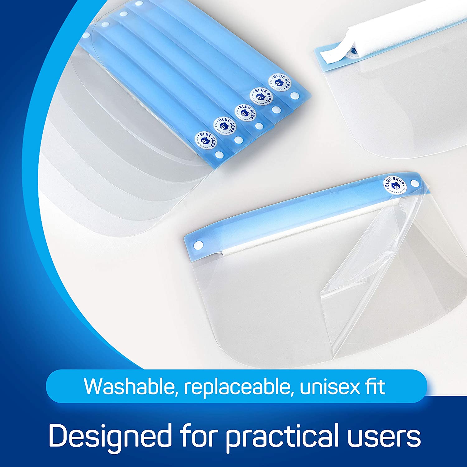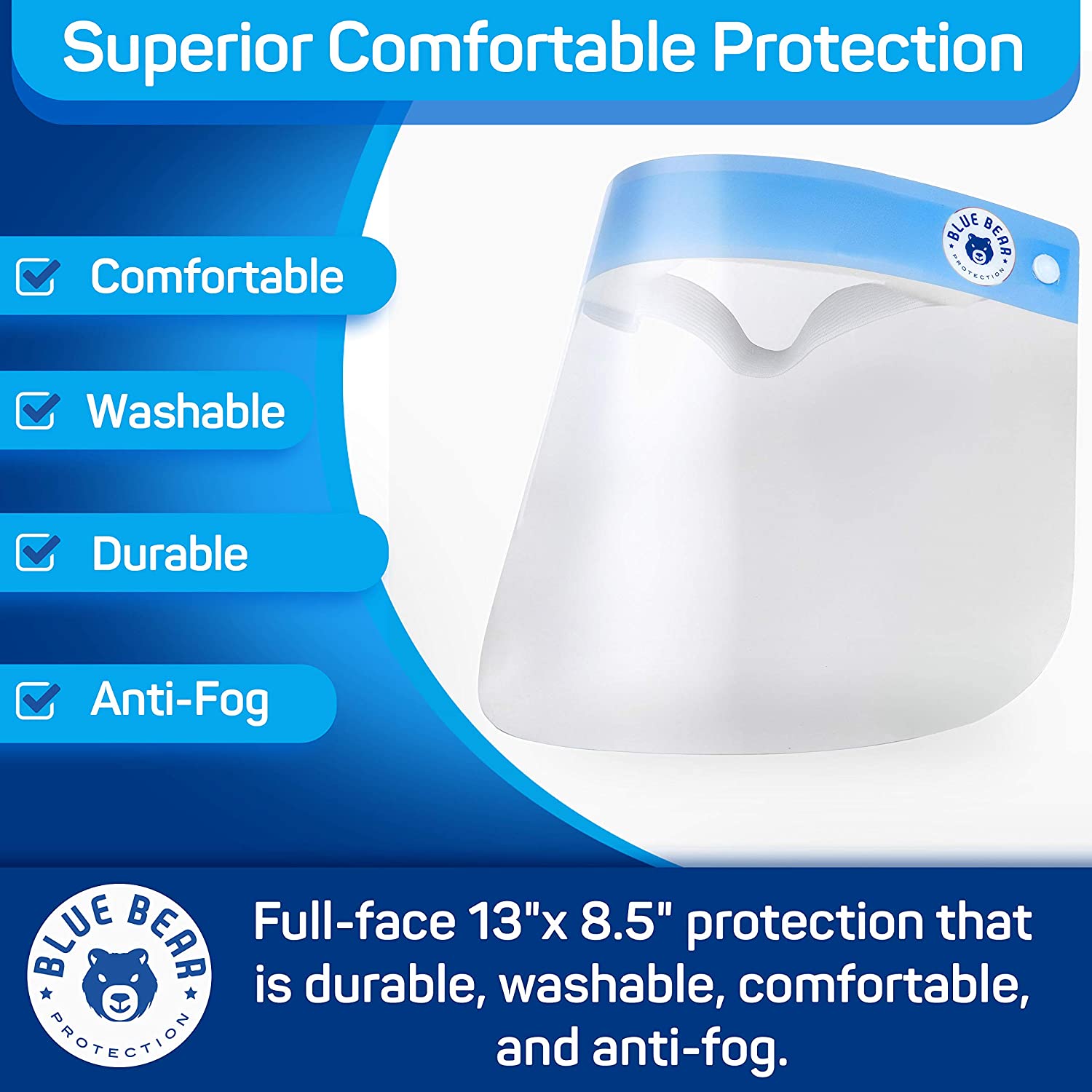 BLUE BEAR PROTECTION Face Shield Protection, Adult Face Shield, Protective Face Shields for Women and Men, Clear Face Shield, Face Shield Mask Reusable, Mask Shield (Pack of 10)