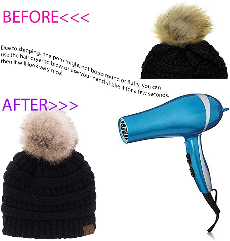 • Clean & Care : After receiving the hat, use hair dryer with cold wind and brush with small-tooth comb to make the fur fluffy. Then shake the faux fur pom pom to let the float hair gone. Handwash only for hat to prevent deformation.