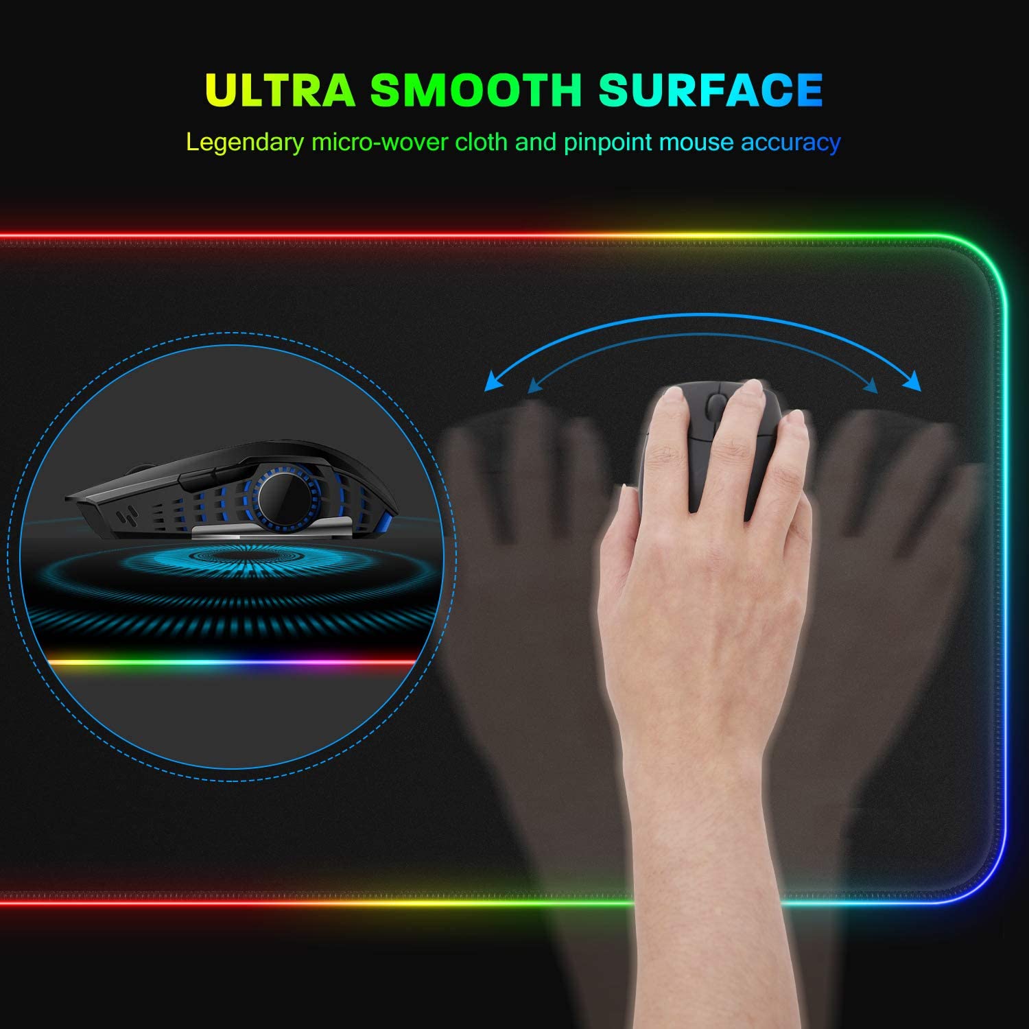【 Ultra-Smooth & Waterproof Surface】 The RGB Gaming Mouse Pads design with superfine fiber braided material which are micro-textured, smooth surface, precise navigation without warped, so the mouse could moves seamlessly across the pad and then the cursor follows the mouse precisely. Waterproof design, even if you sprinkle water, tilt the mouse pad to pour out the drops.