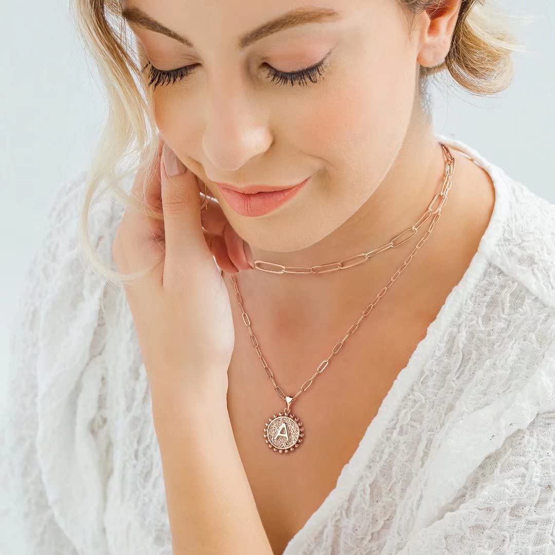 LAYERED NECKLACE: 2Pcs Layered necklace, paperclip chain choker necklace, initial coin pendant necklaces. Fashion originates from classics, minimalism design, great for wearing alone or layering with other dainty necklaces.