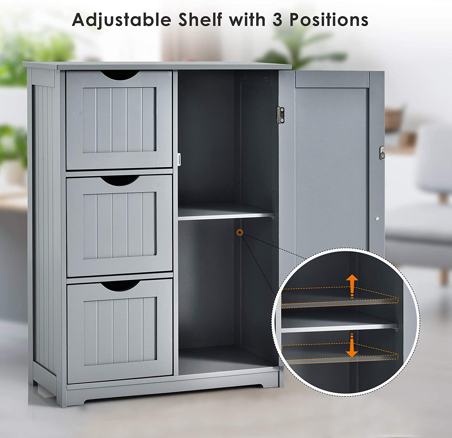 Adjustable Shelf & Tilting Preventing Design: The shelf in the cupboard can be adjusted with 3 different positions freely. Plus, you can remove the divider to enlarge storage space. And the cabinet is also equipped with tilting preventing device to prevent tilting and falling down.