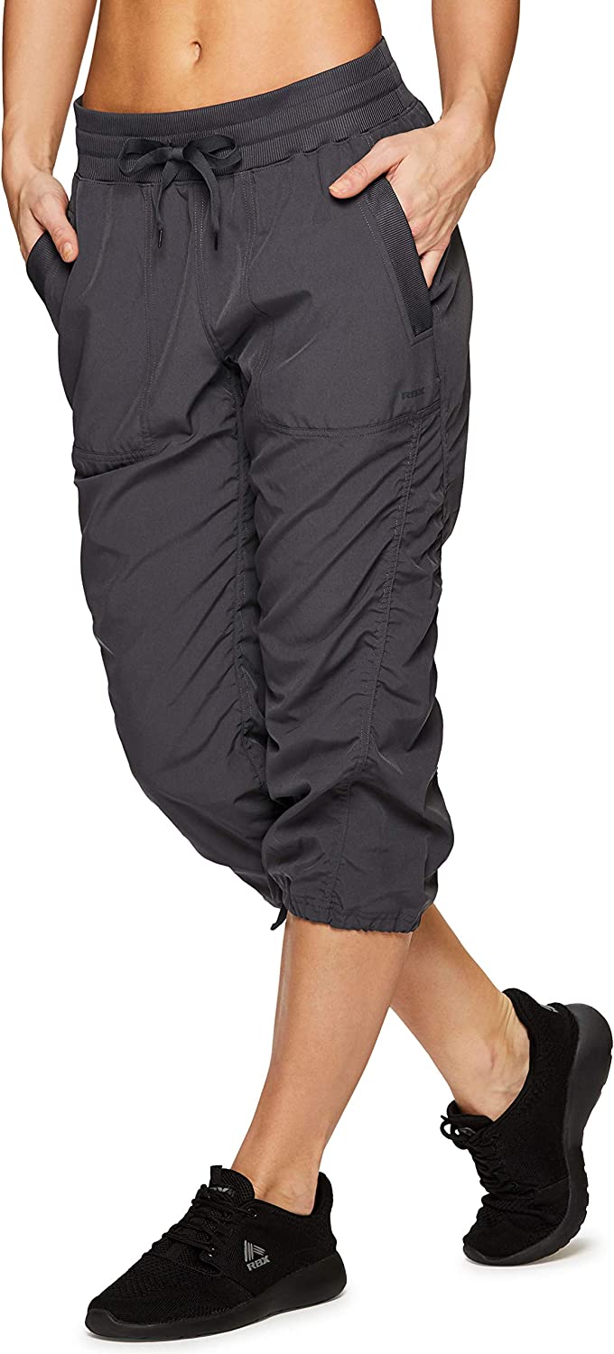 RBX Active Women's Fashion Lightweight Stretch Woven Body Skimming Drawstring Capri Pant