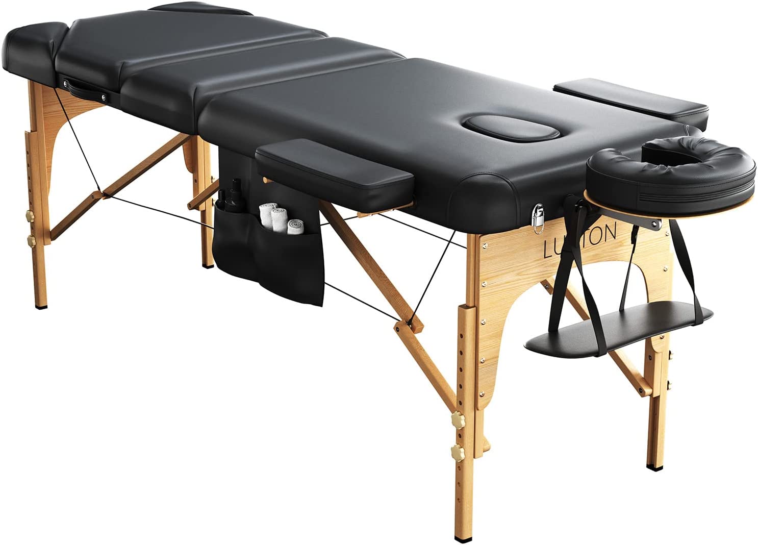 STRONG AND STURDY SUPPORT: The portable massage bed is crafted with precision and made with high quality, durable materials. It is tested to hold a maximum weight of 551 lbs. It is professionally made with a hardwood frame and durable steel support cables.