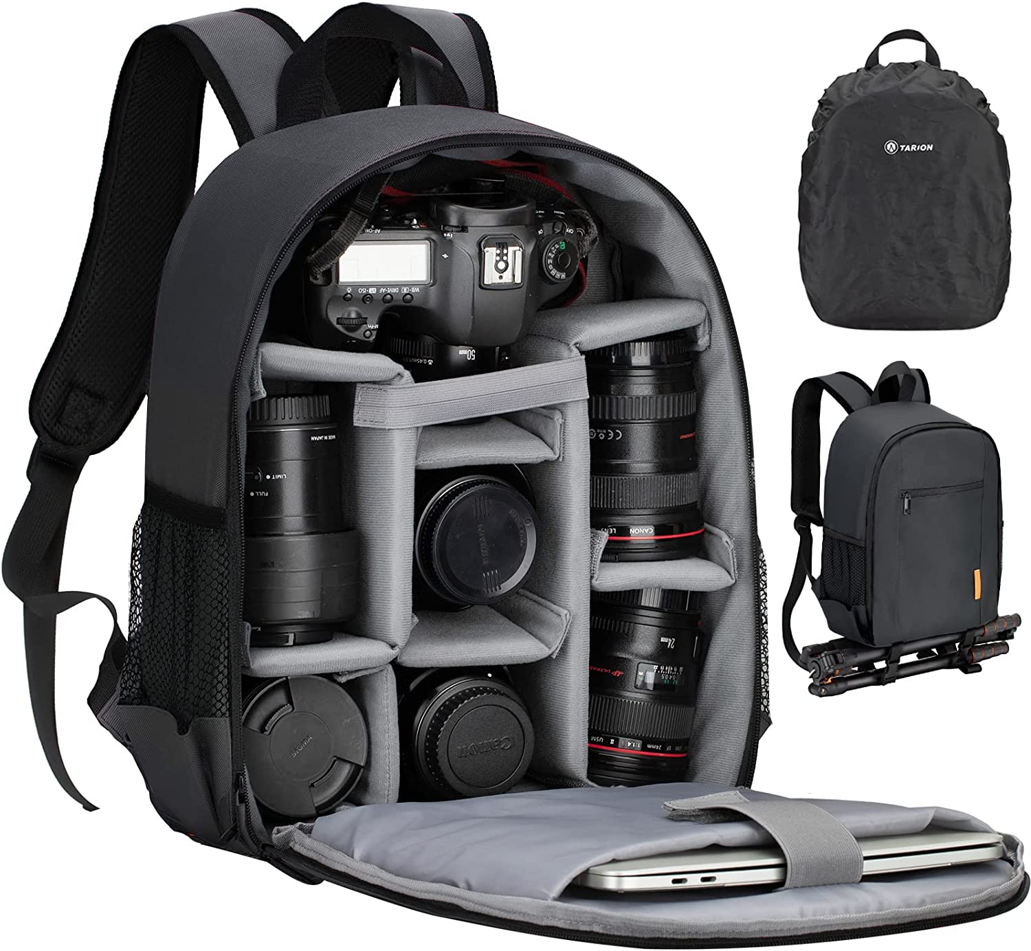 - 【MULTI-FUNCTIONAL】 This dslr camera backpack can be easily converted into a lightweight flexible simple straight daily backpack by removing the camera compartment dividers. Super easy to use for small day trips, there's enough room for personal gear. Obviously black is far more practical for everyday use. If you are not satisfied with our camera bag or have any questions, please feel free to contact us. TARION is always here.