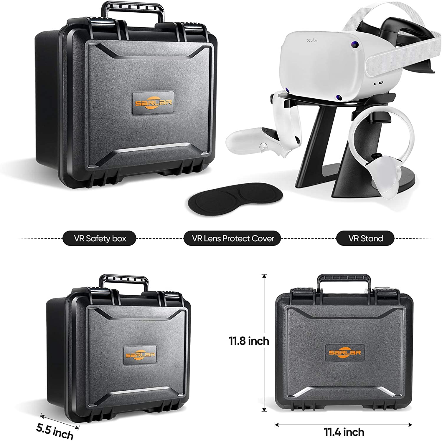 SARLAR Hard Carrying Case for Oculus Quest 2 Official Elite Strap Safe and Portable Protection, Travel Case Storage VR Gaming Headset and Touch Controller Accessories, Included VR Stand and Lens Cover