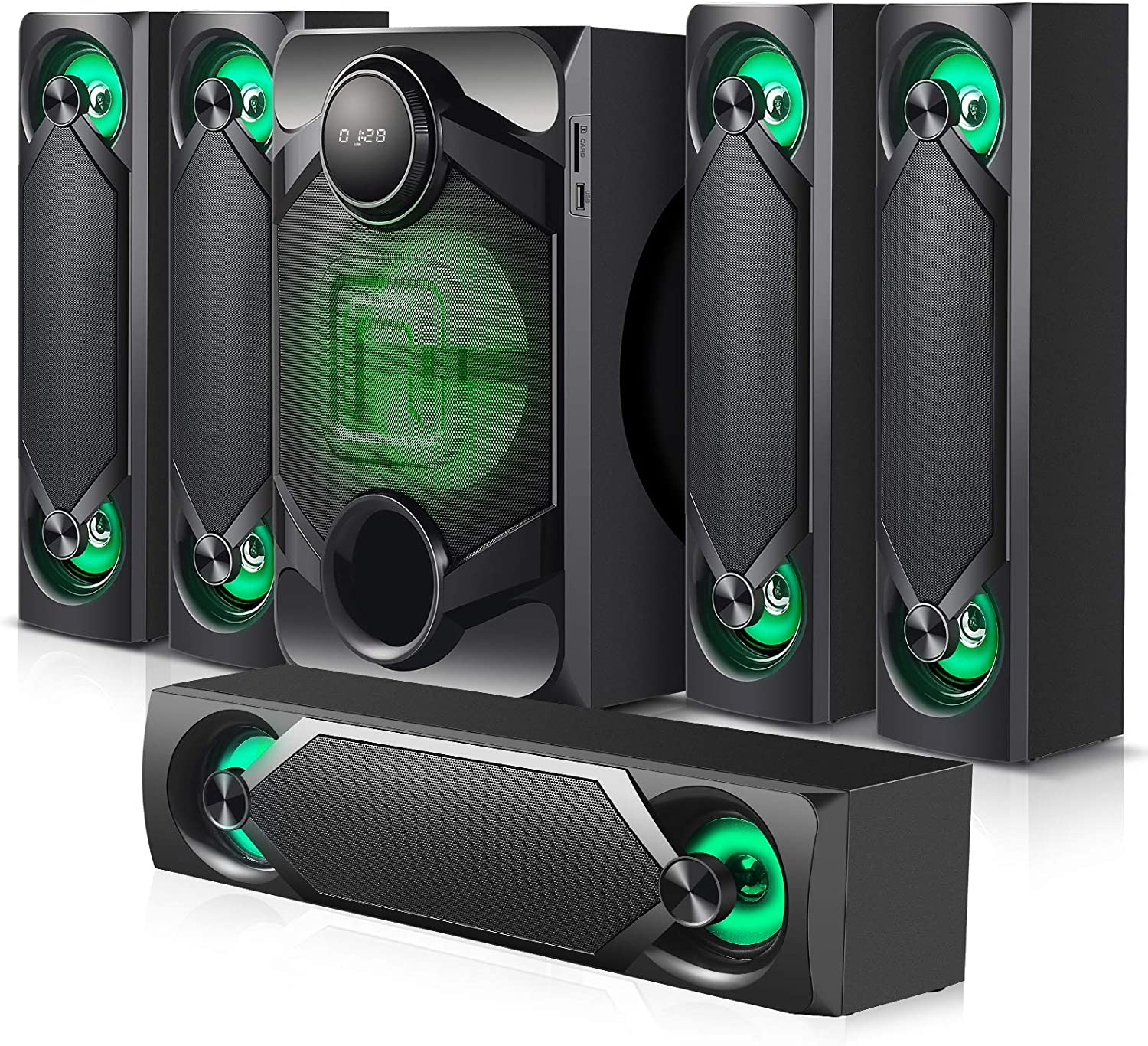Nyne NHT5.1RGB 5.1 Channel Surround Sound Home Audio Theatre System – for TV, Bluetooth, LED, USB, SD, RCA Out in, 8 Inch Active Subwoofer, 6 Inch Passive Radiator, Soundbar, Cinema Acoustics