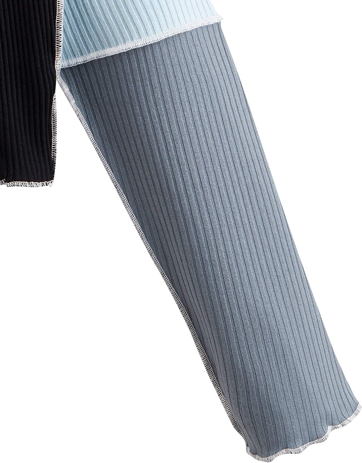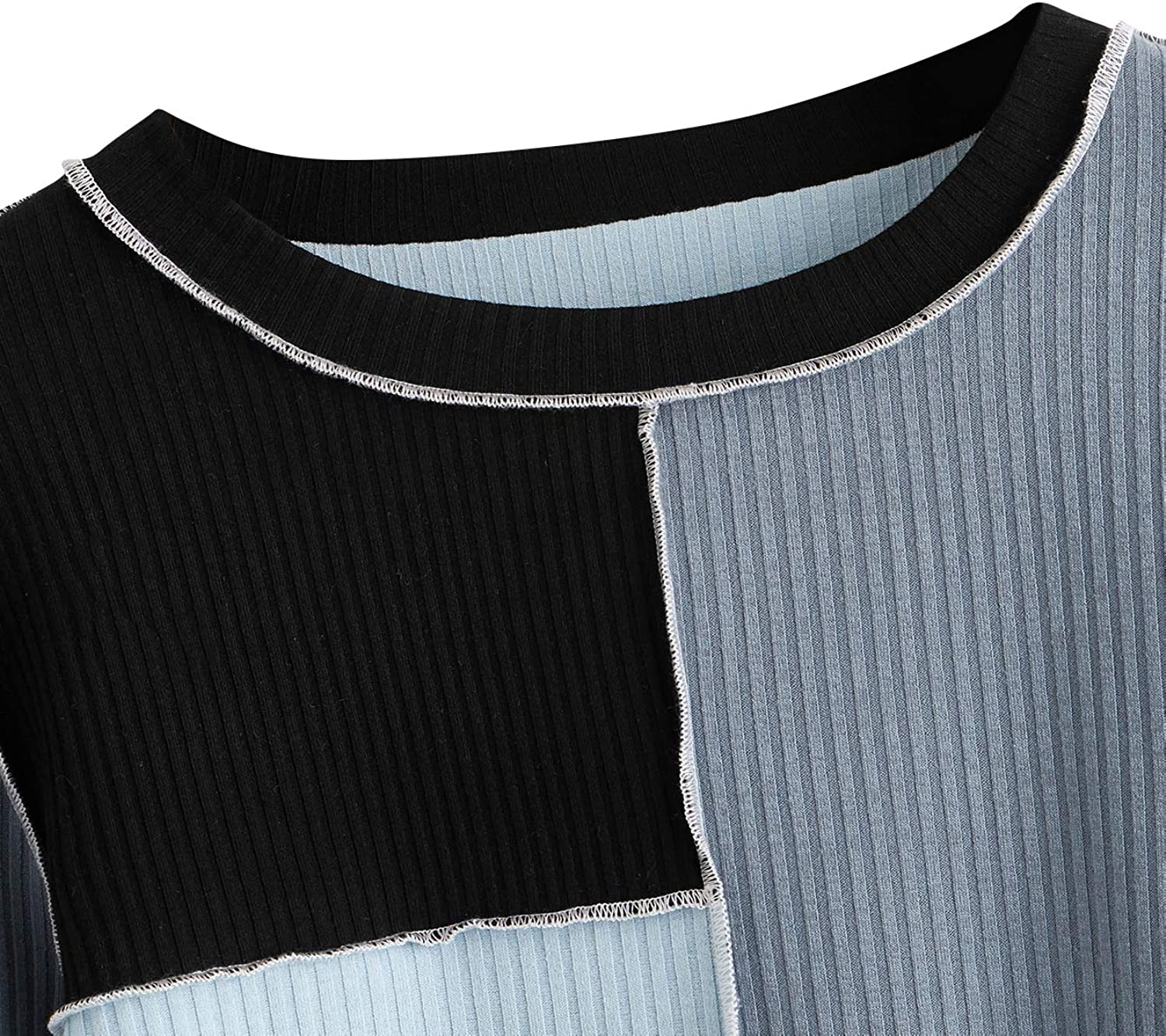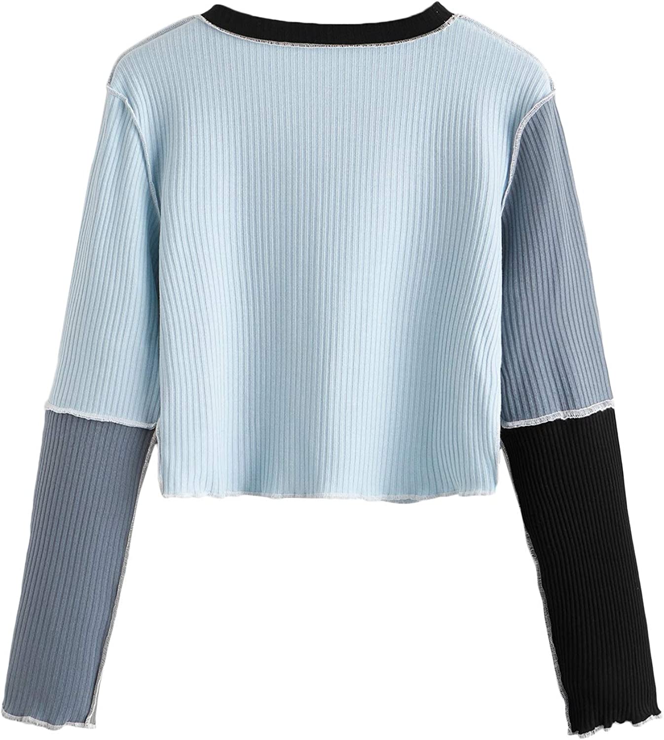 SheIn Women's Patchwork Color Block Crop Top Tees Long Sleeve Round Neck Ribbed Knit T Shirt