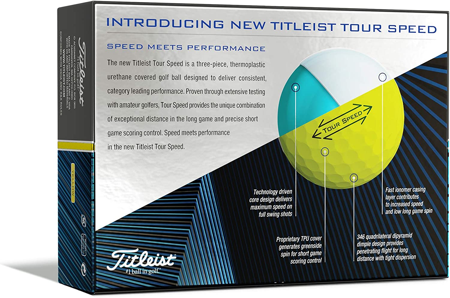 Titleist Tour Speed Golf Ball is a multilayer, thermoplastic urethane covered golf ball providing exceptional distance in the long game and precise short game control. Fast Ionomer casing layer contributes to increased speed and low long game spin. Proprietary TPU cover generates greenside spin for short game scoring control. 346 Quadrilateral dipyramid dimple design provides penetrating flight for long-distance with tight dispersion. At Titleist, our goal is to help all golfers play better and shoot lower scores and being fit for the right golf ball is an important part of that. Comes in white colour.