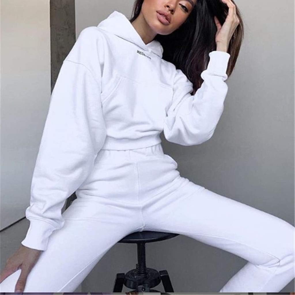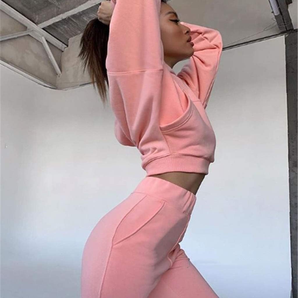 YUTRD ZCJUX 2pcs Long Sleeve Crop Top Hoodies Women Two Piece Outfits Stacked Pants Fashion Clothing Set Tracksuit (Color : B, Size : Medium)