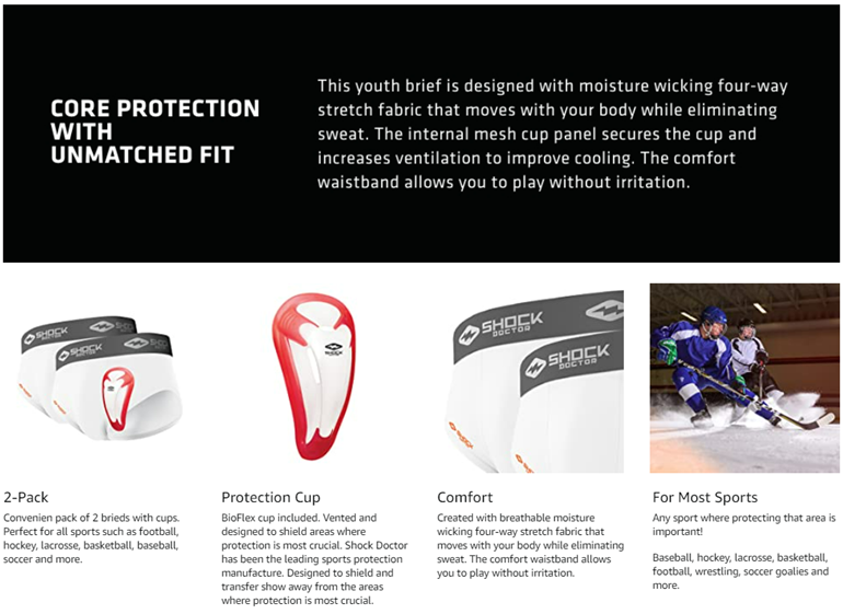 PROTECTION CUP – BioFlex cup included, a vented bio-shape device designed to shield areas where protection is most crucial. Shock Doctor has been the leading sports protection manufacturer. Designed to shield and transfer shock away from areas where protection is most crucial.