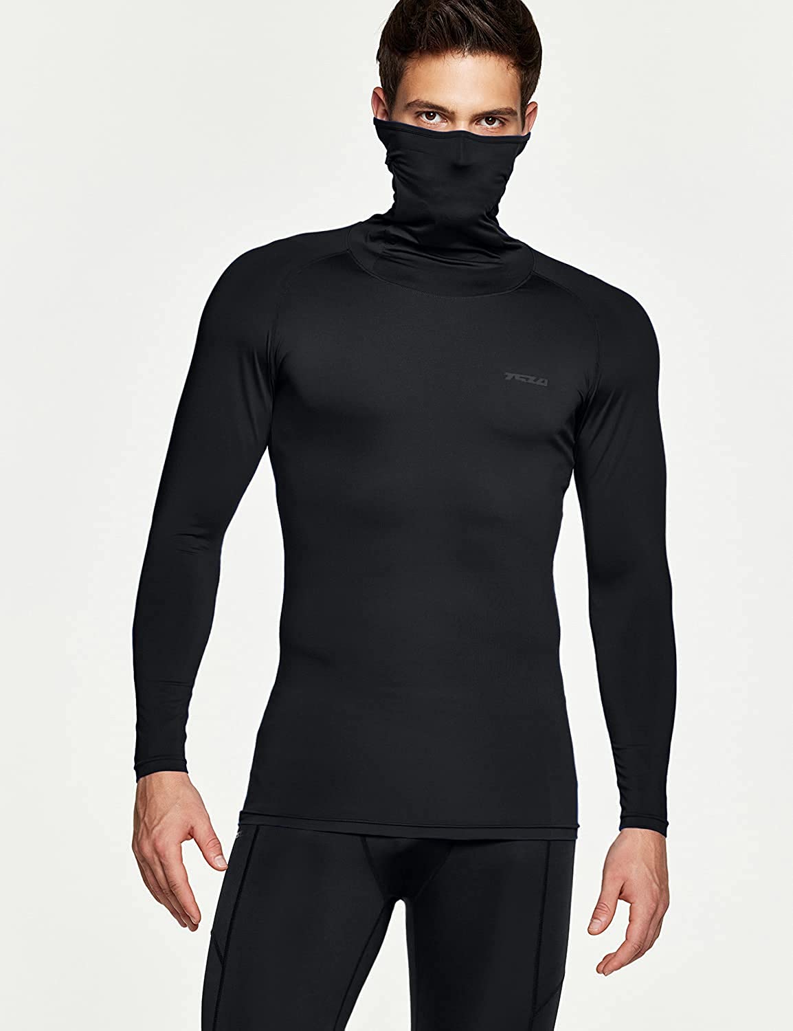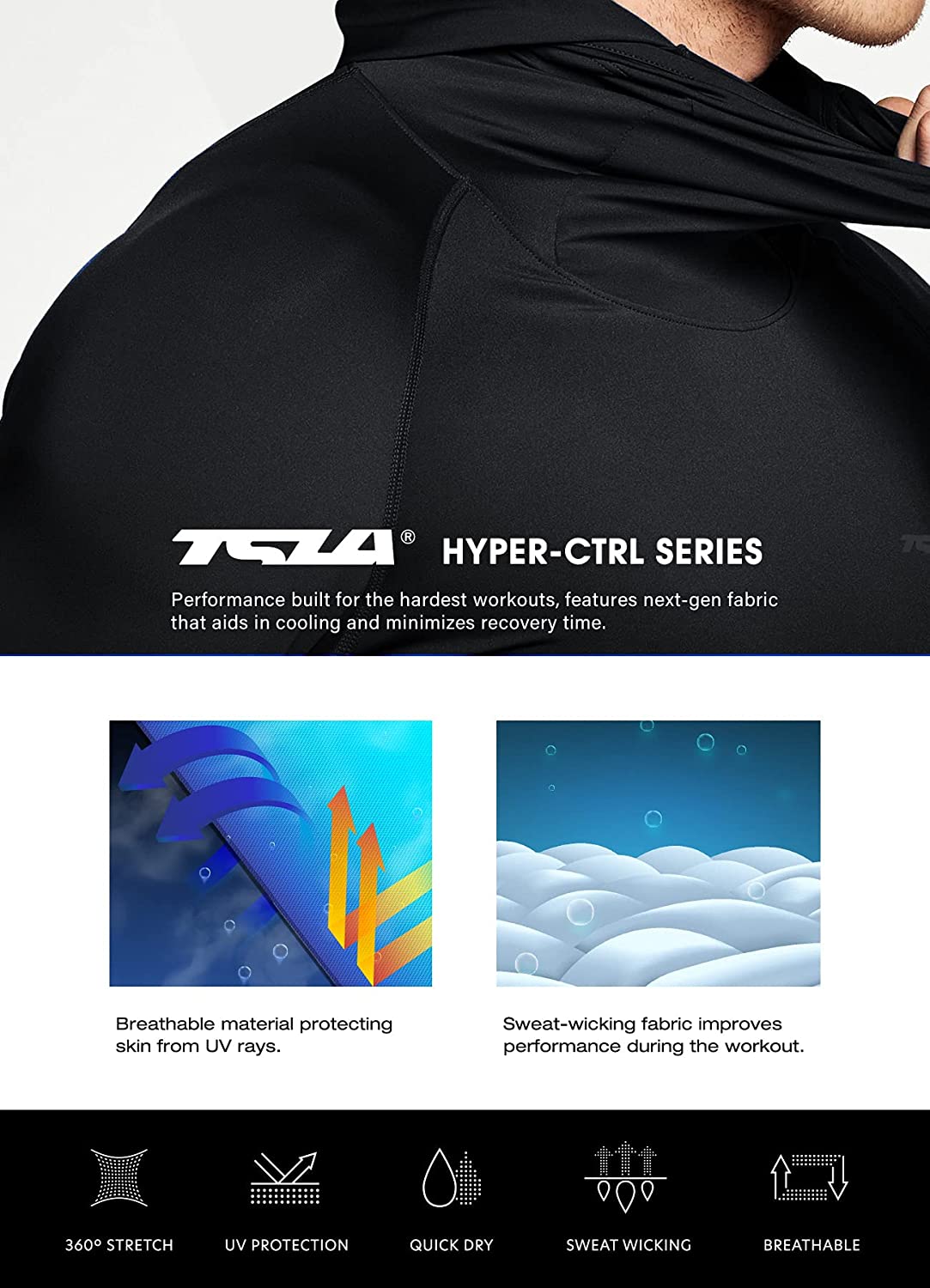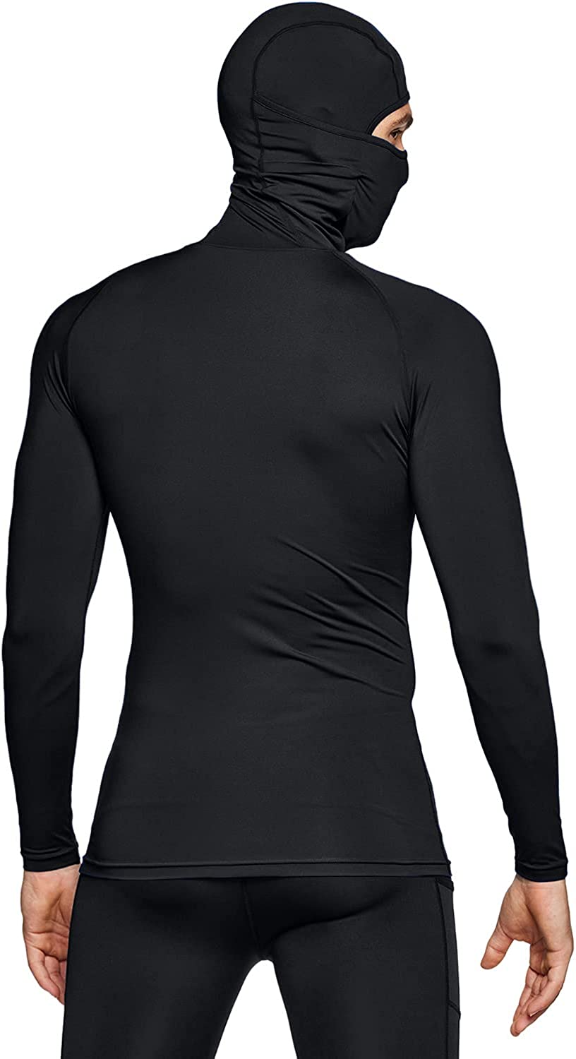 TSLA Men's Long Sleeve Workout Shirts Hoodie with Mask, UPF 50+ Cool Dry Fit Sports Compression Shirts