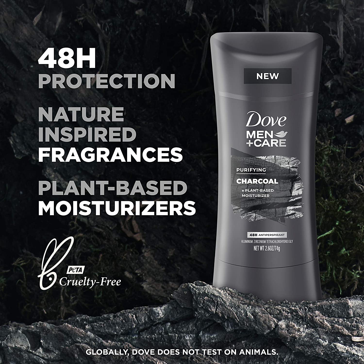 A natural inspired deodorant with 48-hour protection against sweat and odor, and lasting freshness - that's the Dove Men+Care antiperspirant with Charcoal. For men who want protection that works through busy, active days, this antiperspirant deodorant for men is made to leave you feeling purified and dry for a full 48 hours. This antiperspirant is one of the strongest defenses against sweat and odor, with natural essential oil extracts, plant-based moisturizers and the purifying feeling of Charcoal. This deodorant offers long-lasting performance and comfort because it's tough on sweat, but not on the skin. Swipe with ease to experience a smooth glide and keep your underarms feeling clean for the long-lasting protection that you need. You can also rest assured that Dove's global commitment to sustainability means this deodorant is cruelty-free, with no testing done on animals. To complete your grooming routine, explore the entire Dove Men+Care Plant-Based Care range. Whether it's the Dove Men + Care Charcoal Clove Body Wash or the Dove Men + Care Eucalyptus+ Birch, there are many options to pair this deodorant with. You can also choose from Dove Men + Care 0% Aluminum deodorant sticks and sprays available in invigorating scents like Lime + Sage and soothing ones like Sandalwood + Orange.Un desodorante de inspiración natural con protección de 48 horas contra el sudor y el olor, y frescura duradera, es el antitranspirante Dove Men+Care con carbón vegetal. Para los hombres que quieren una protección que funcione durante días ocupados y activos, este desodorante antitranspirante para hombres está hecho para dejarte purificado y seco durante 48 horas. Este antitranspirante es una de las defensas más fuertes contra el sudor y el olor, con extractos naturales de aceites esenciales, humectantes a base de plantas y la sensación purificadora de carbón. Este desodorante ofrece un rendimiento duradero y comodidad porque es resistente al sudor, pero no a la piel. Desliza con facilidad para experimentar un deslizamiento suave y mantener las axilas con una sensación limpia para la protección duradera que necesitas. También puede estar seguro de que el compromiso global de Dove con la sostenibilidad significa que este desodorante está libre de crueldad, sin pruebas realizadas en animales. Para completar su rutina de aseo de limpieza, explore toda la gama Dove Men+Care Plant-Based Care. Ya sea el lavado corporal Dove Men + Care Charcoal Clove o el Dove Men + Care Eucalyptus+ Birch, hay muchas opciones para combinar este desodorante. También puedes elegir entre palillos desodorantes y aerosoles Dove Men + Care 0% aluminio disponibles en aromas estimulantes como lima + salvia y calmantes como sándalo + naranja.