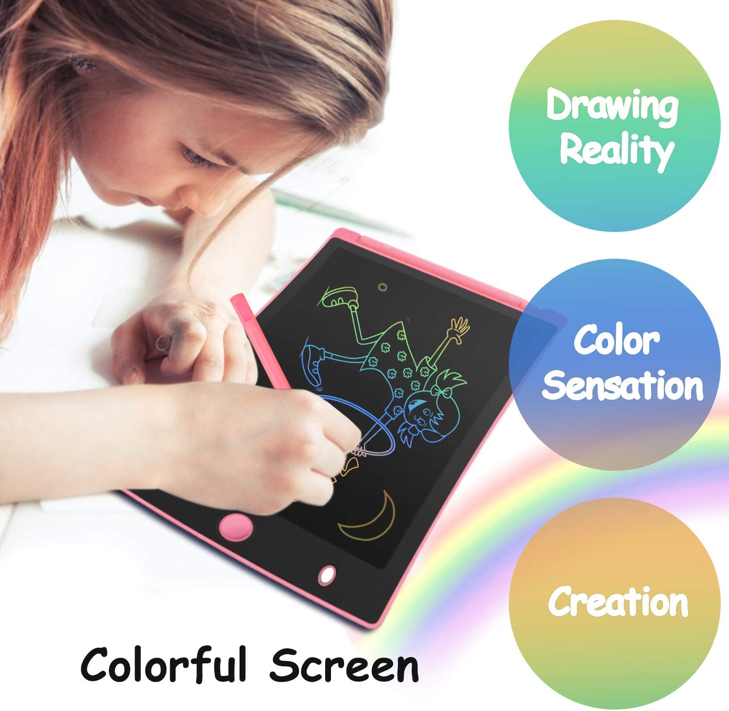 - EYE PROTECTION -- The kids' electronics writing tablet adopt lcd screen, no radiation, no glare, Its safe and comfortable when children use for a long time. Your kids can freely release their natural instincts