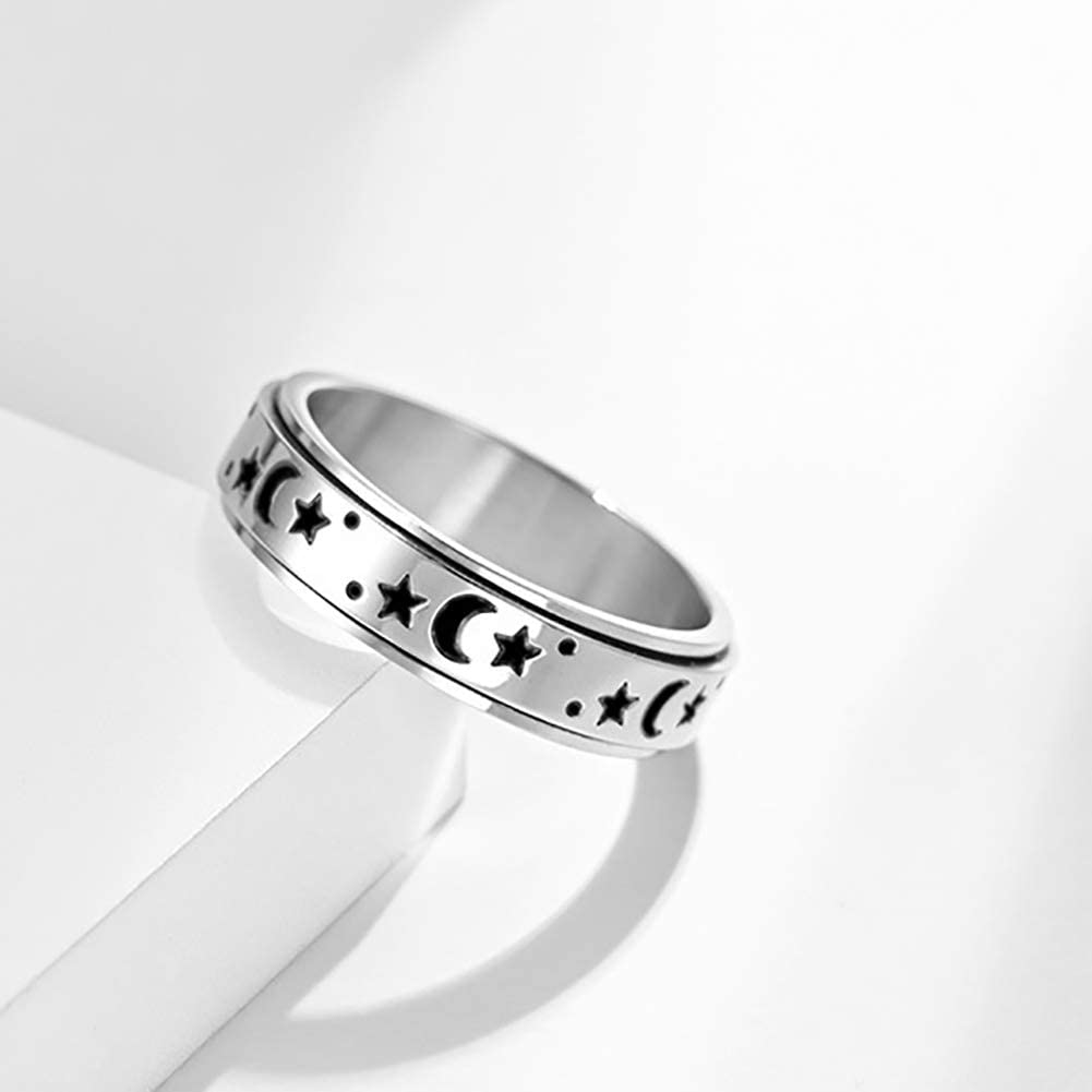 Perfect gift: This moon star spinner ring is suitable for giving to friends, family, boys, girls, boyfriends and girlfriends. If you have an anxious friend around you, this titanium stainless steel anxiety rings is the perfect gift to help them release their stress.