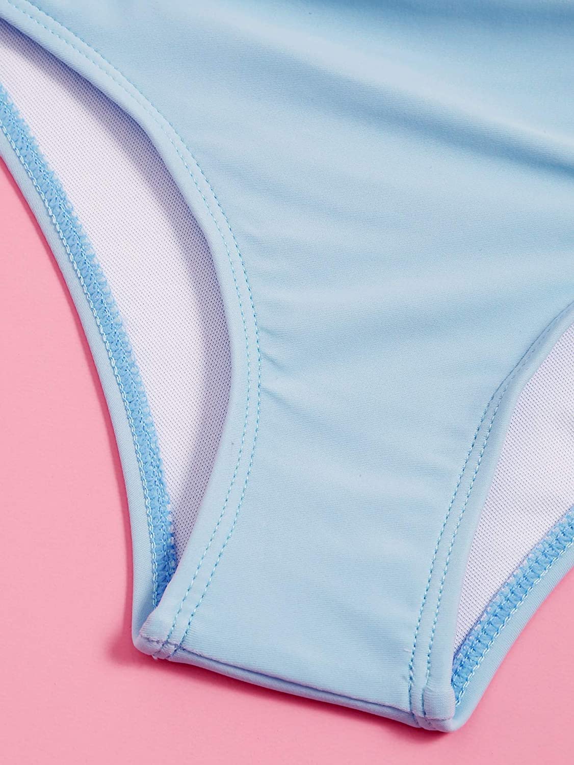 Romwe Girl's 2 Piece Swimsuit Sport Solid High Waist Bikini Set Bathing Suit