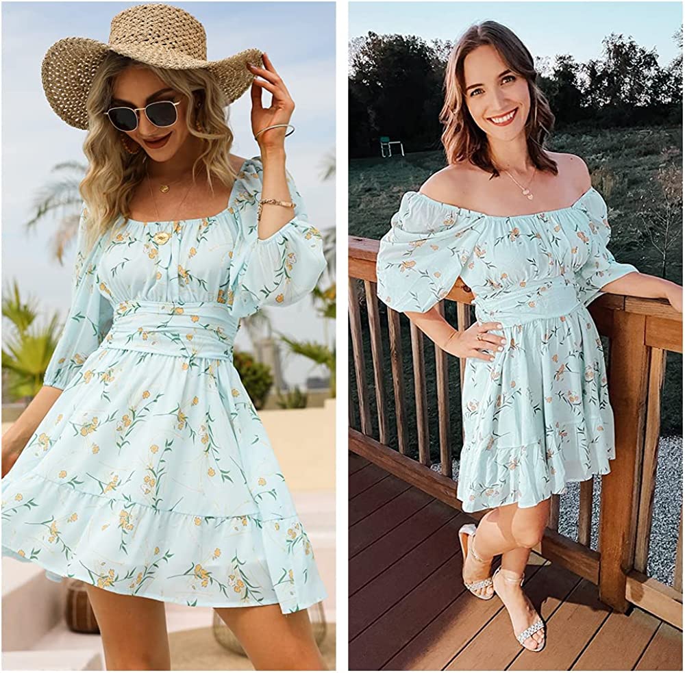 Design: square collar and lantern sleeves bring a retro style. The sleeves can be pulled down for a cute off-shoulder look. The elastic smocked waist dress shows the body curves. Sexy open back with adjustable self-tie bowknot. Pretty ruffle hemline finish.