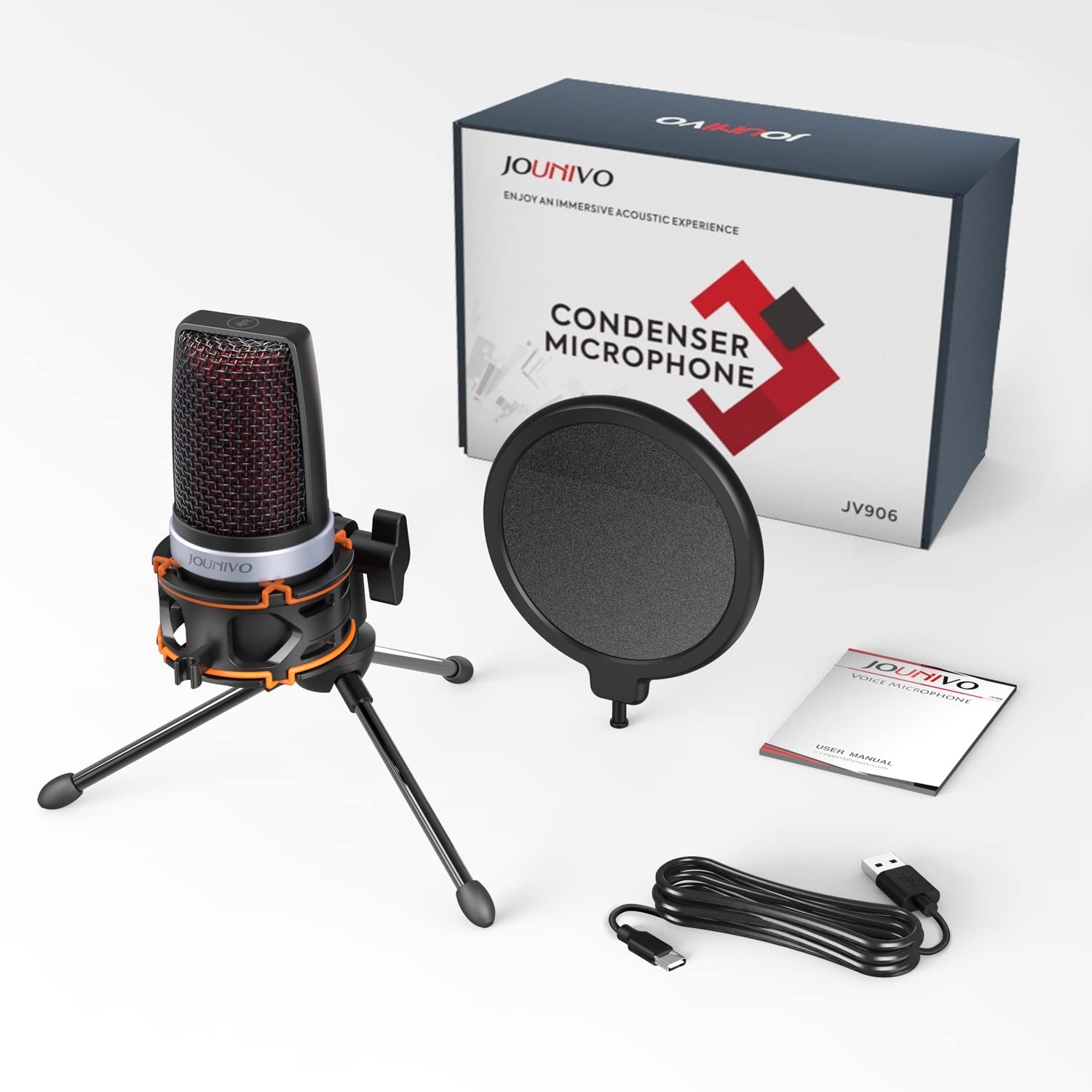 JOUNIVO USB Microphone for Computer, Condenser Microphone with Tripod Stand & Pop Filter. Compatible with PC Laptop Mac OS, Great for Streaming, Podcasts, Twitch, YouTube, Discord