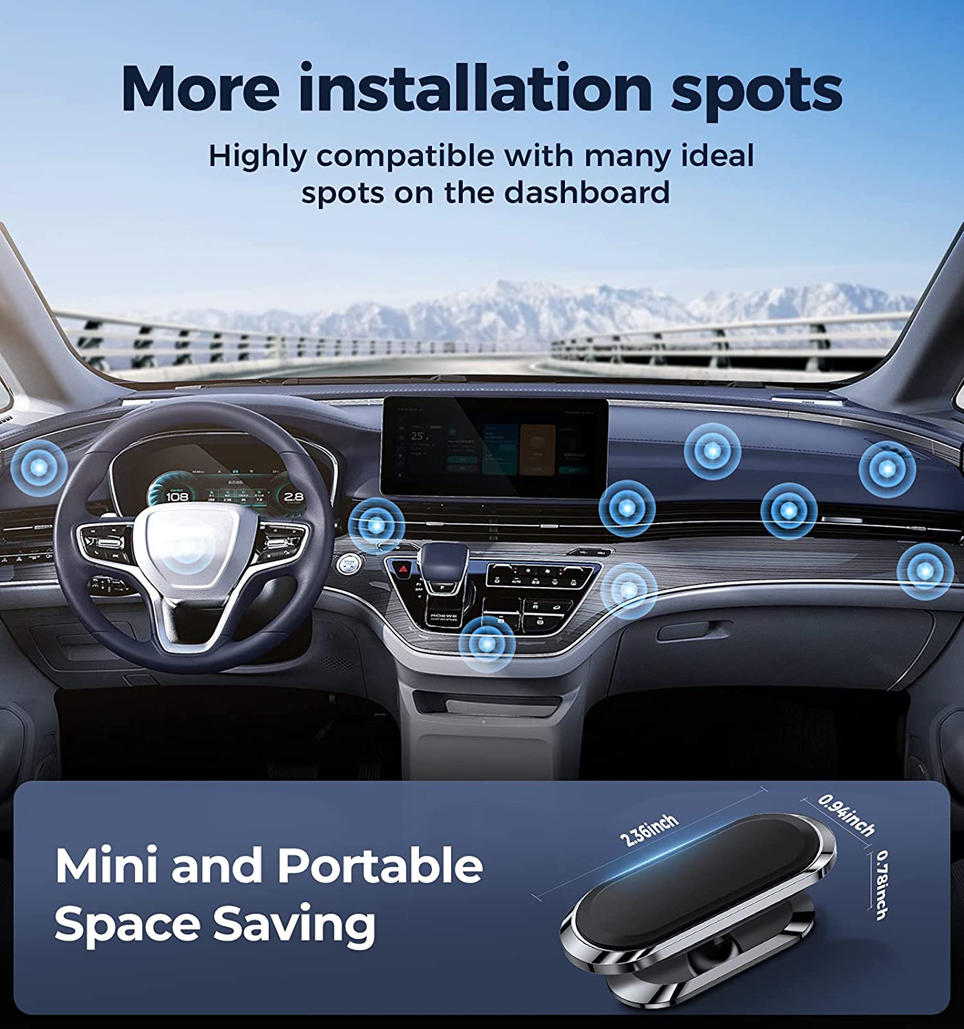 ?【2022 Upgrade Super Adhesion Force】Use the 2022 upgrade 3M VHB (Very High Bond) adhesive pad, which can firmly stick to any plane in the car, fix your device, adapt to a variety of road conditions such as sudden braking, speed bump, and rugged mountain road. (Sweet Tip: We've got a spare sticky pad for you :) )
