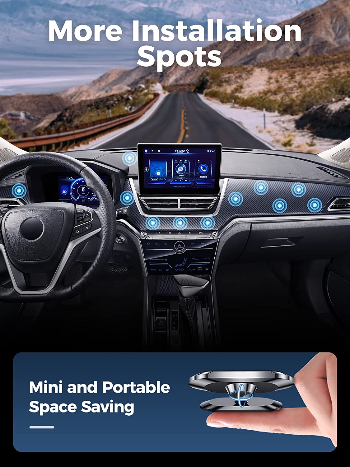 ?【2022 Upgrade Powerful Magnetic】Built-in 8 N52 super high-powered magnets (N52>>N50>N48), Small size while providing a large magnetic field. It can hold big phones steadily, even when you are driving through potholes. Meanwhile, the closed magnetic field would not affect the phone signal. Totally free your hands, so please enjoy the safe and comfortable driving time.